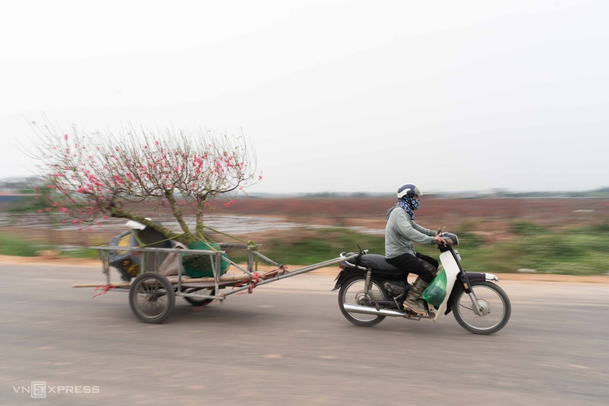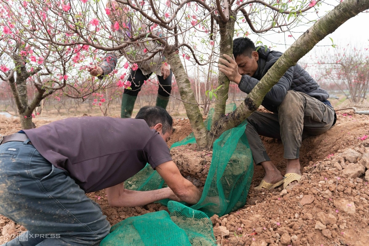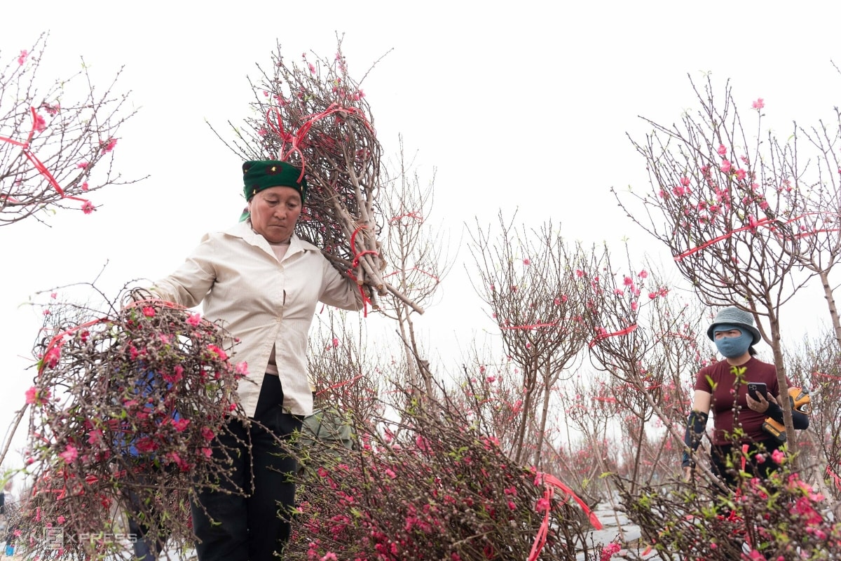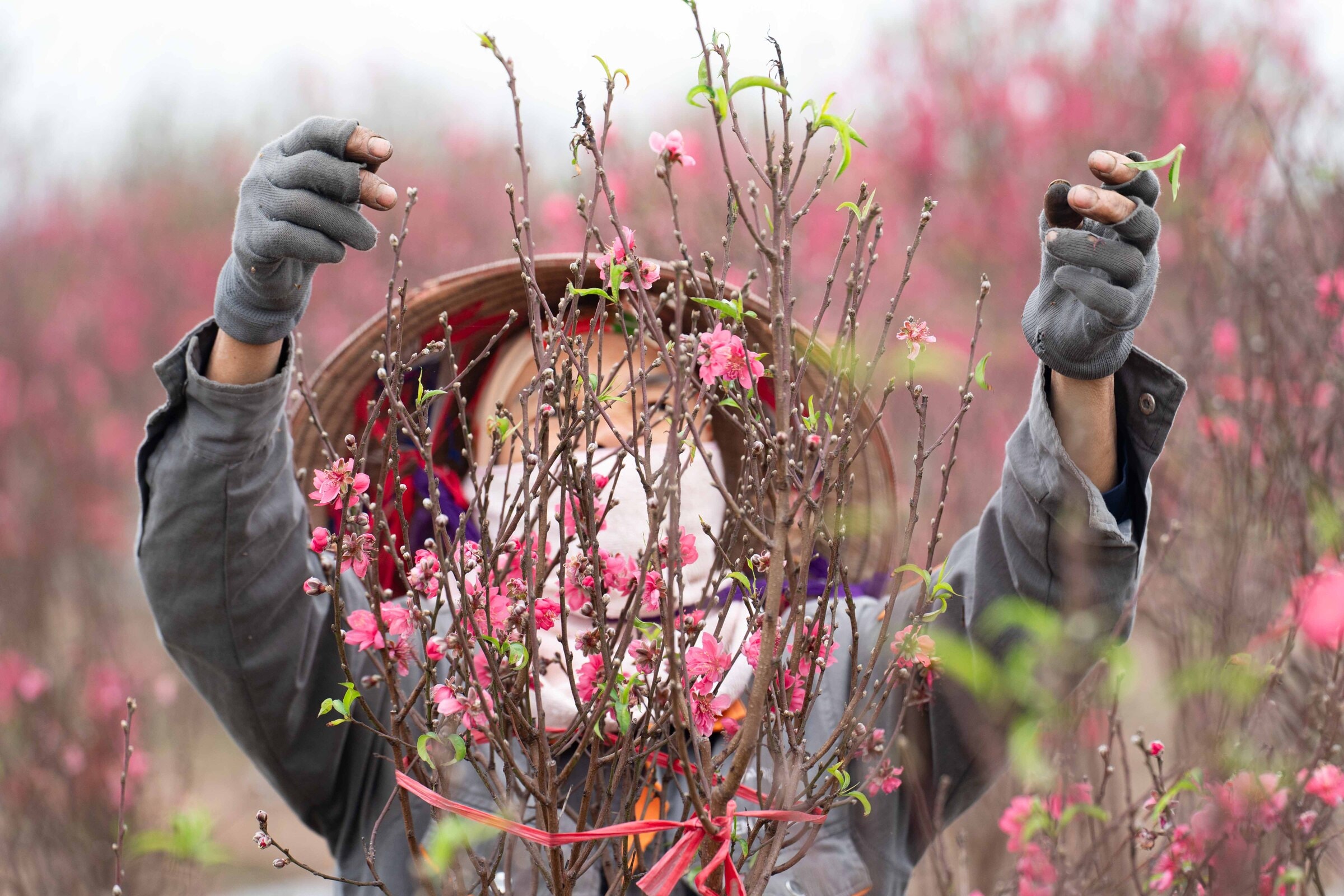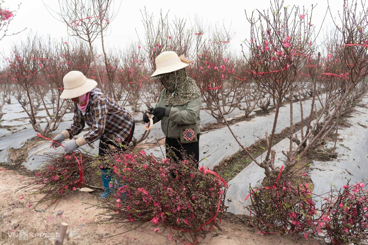 Ba tuần trước Tết Bính Ngọ 2026, làng đào Hồng Hà, xã Ô Diên ngập tràn sắc hoa, thương lái khắp nơi đổ về chọn đào.