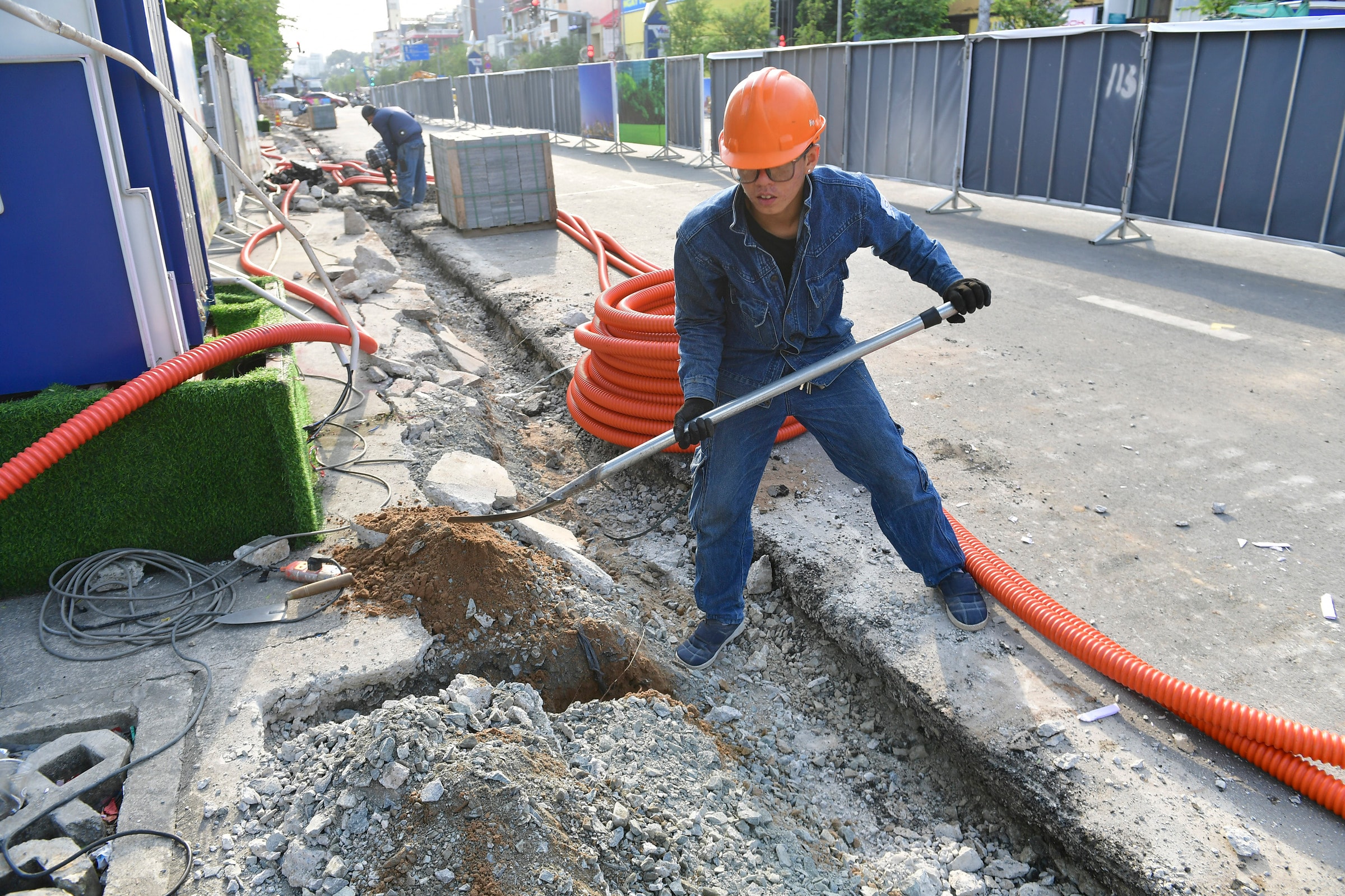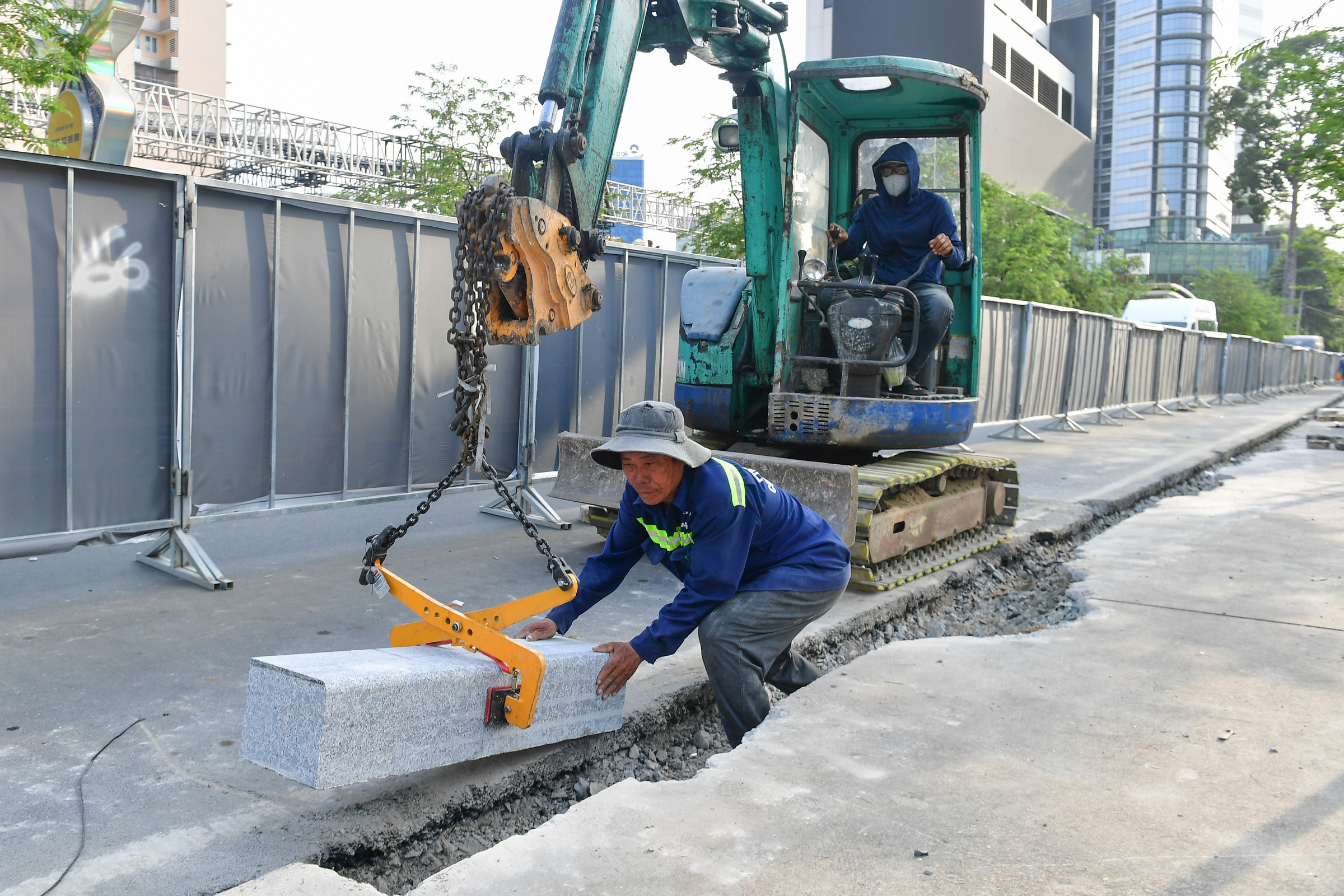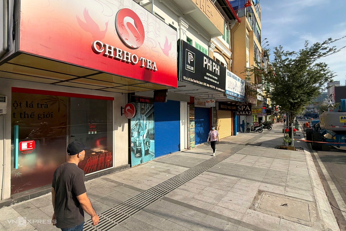 Những ngôi nhà xây từ thời Pháp trên đại lộ Lê Lợi, gần chợ Bến Thành, được sơn sửa mặt tiền với tông màu đồng nhất, vỉa hè lát đá granite tạo điểm nhấn đón năm mới.