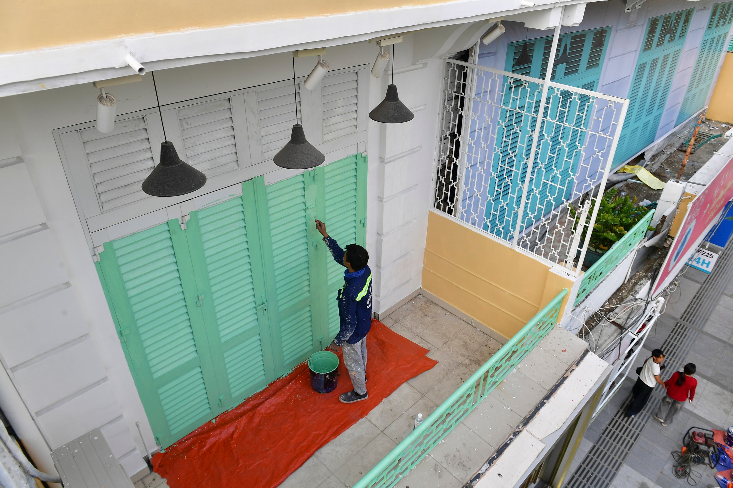 Dãy nhà cổ gần chợ Bến Thành 'thay áo mới' đón Tết