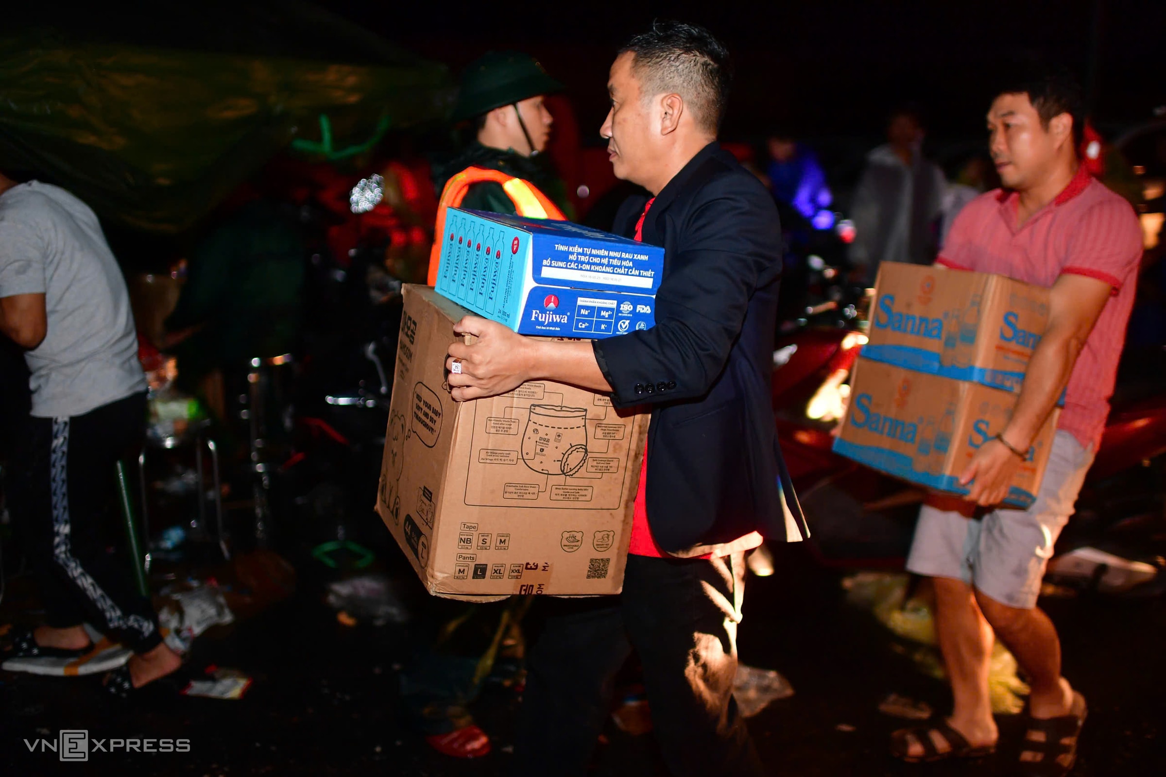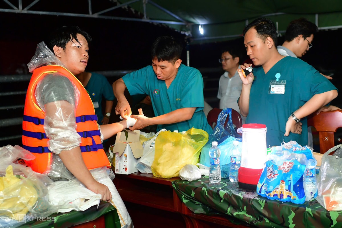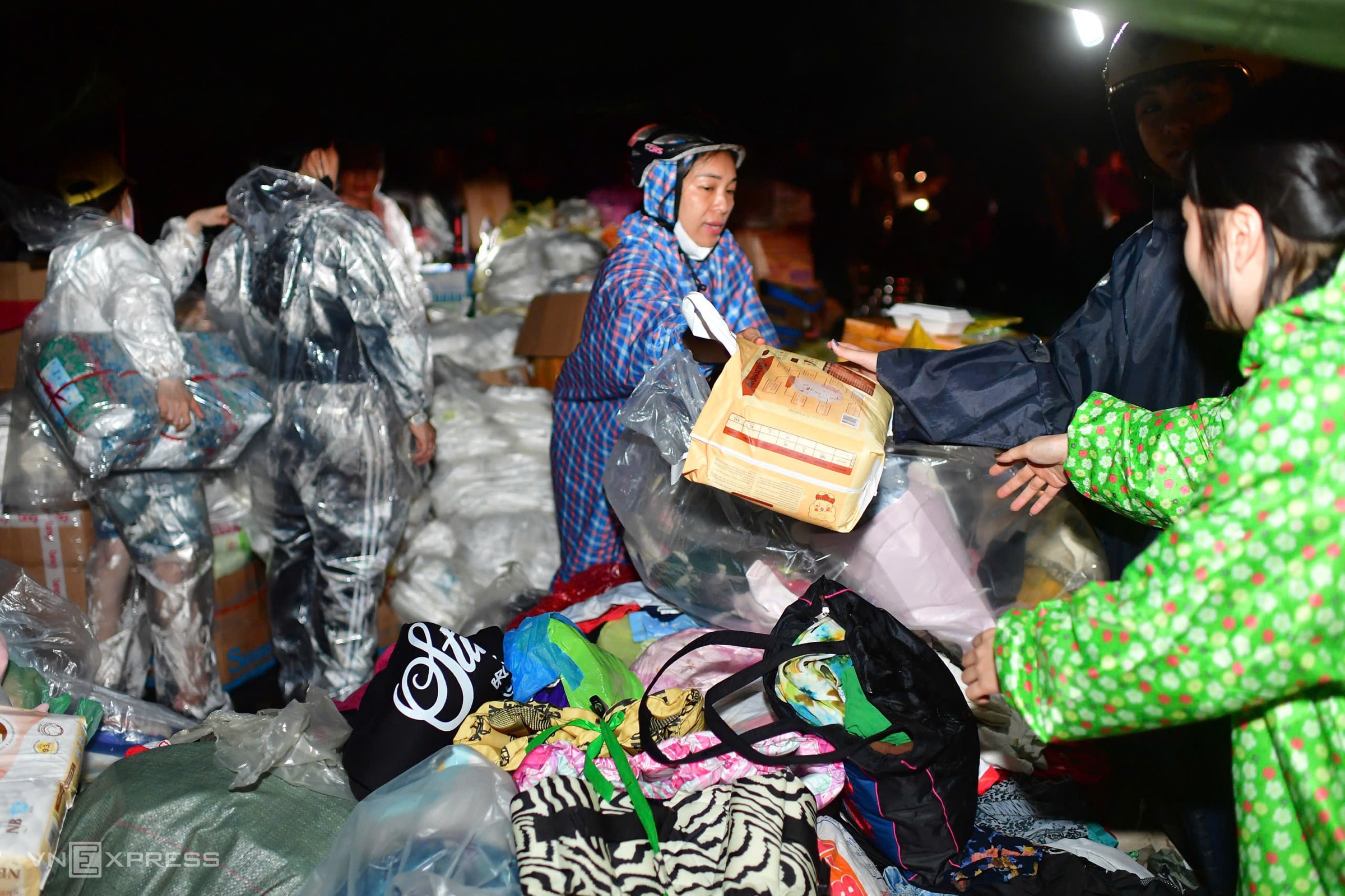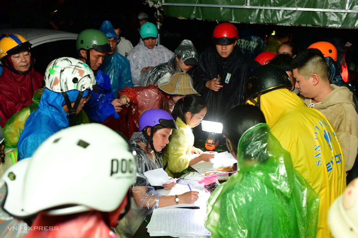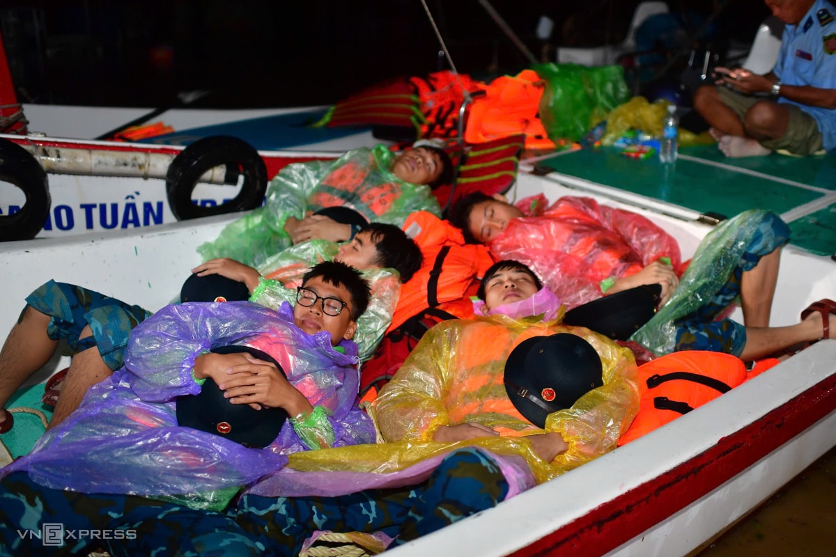Tại điểm lánh nạn, người chạy lũ kiệt sức nằm la liệt, trong khi phía ngoài trời mưa, nhiều trường hợp vẫn ngóng chờ lực lượng cứu hộ đưa thân nhân khỏi vùng ngập sâu.