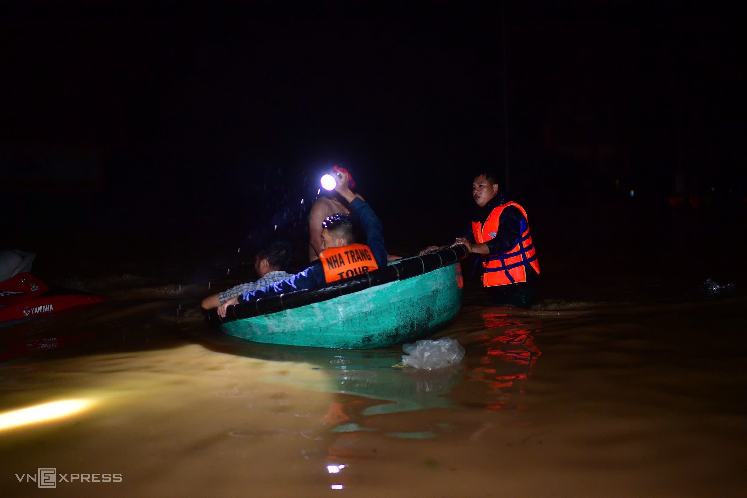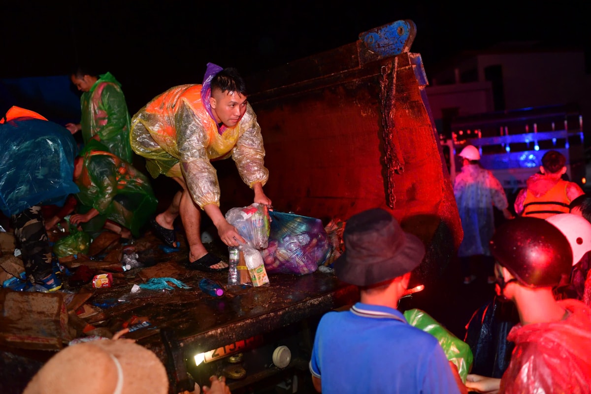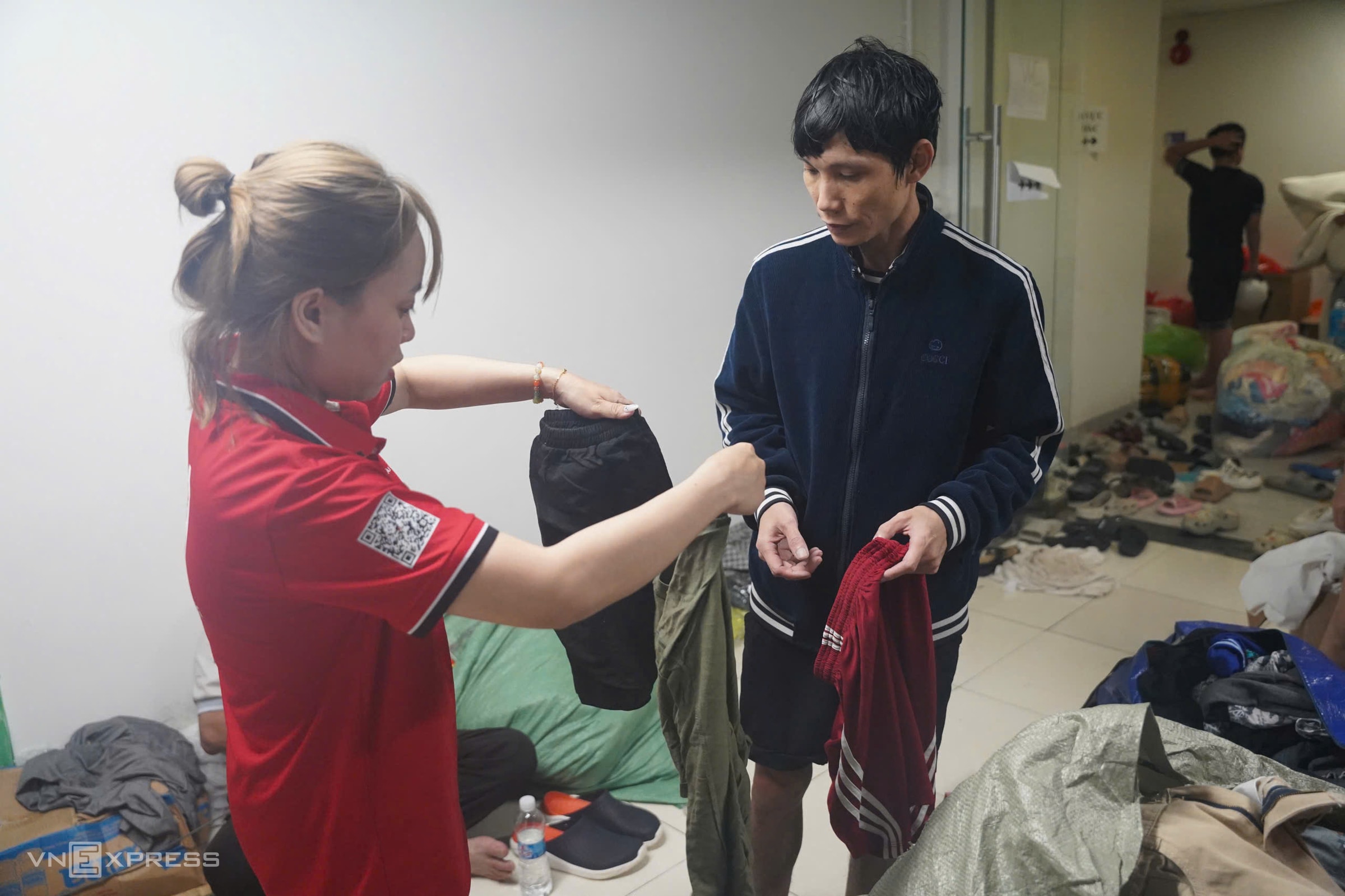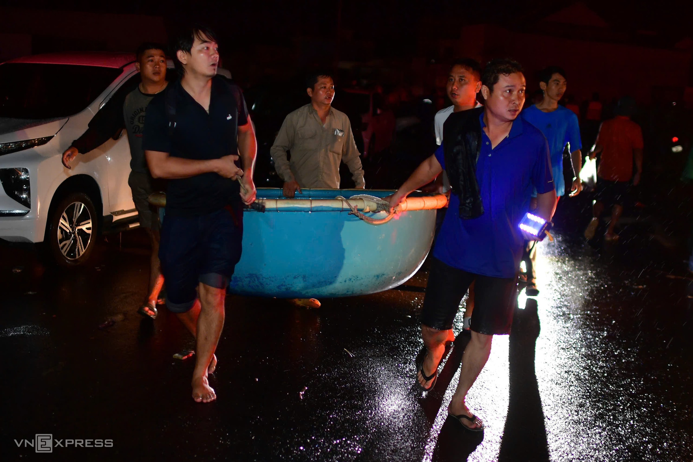 Tại điểm lánh nạn, người chạy lũ kiệt sức nằm la liệt, trong khi phía ngoài trời mưa, nhiều trường hợp vẫn ngóng chờ lực lượng cứu hộ đưa thân nhân khỏi vùng ngập sâu.