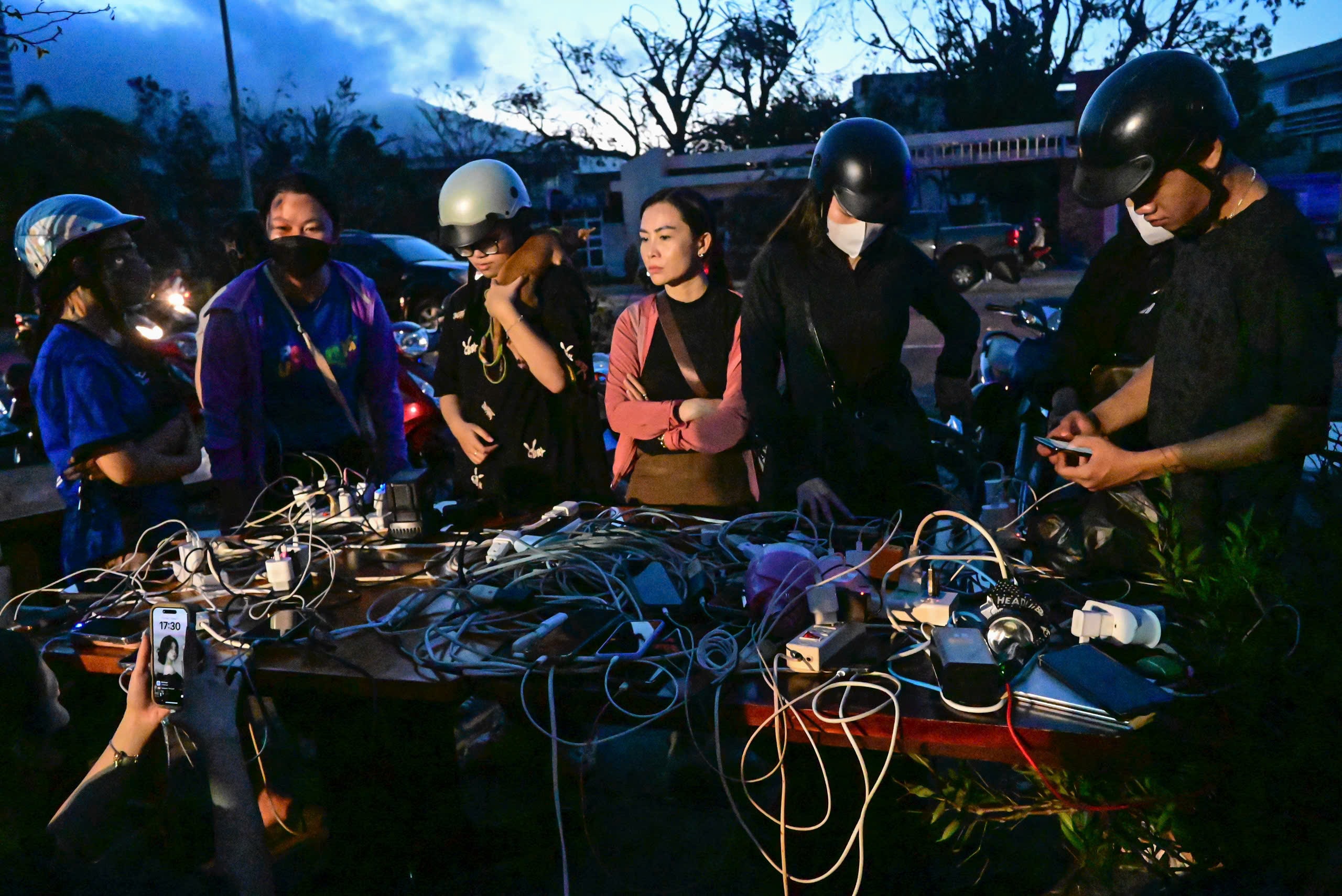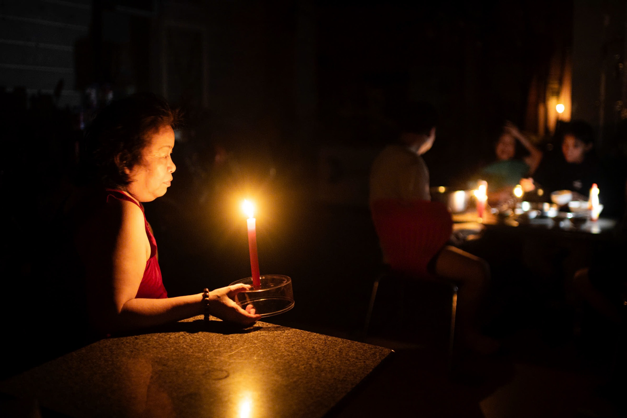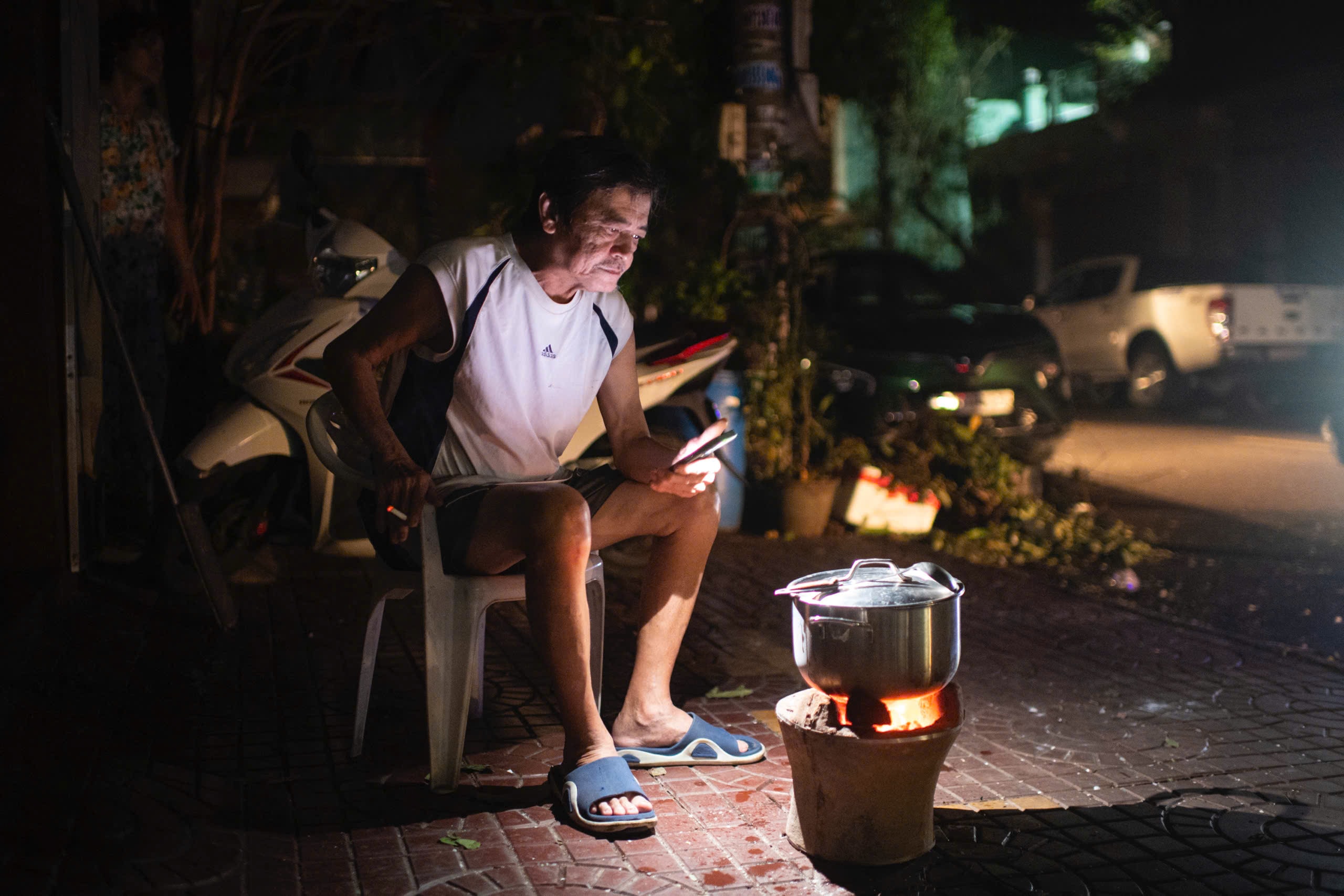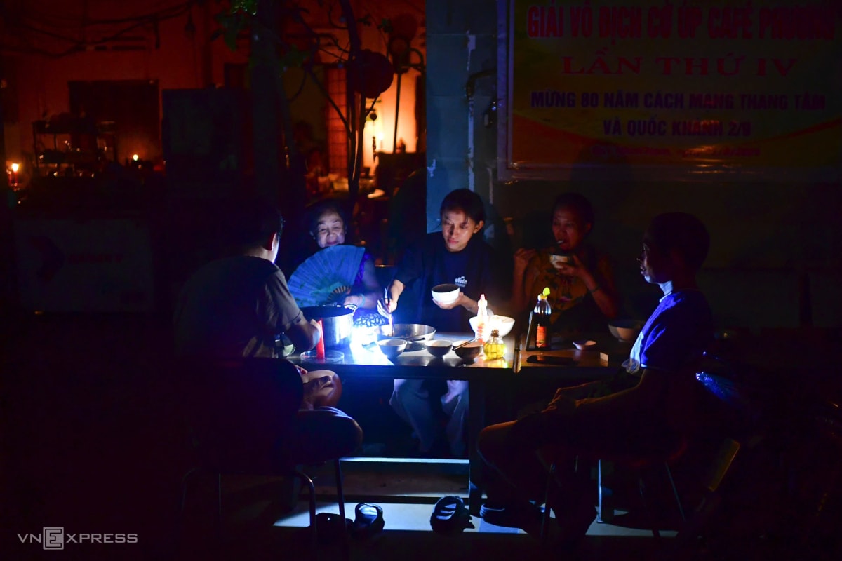 24 giờ sau bão Kalmaegi, Quy Nhơn vẫn mất điện diện rộng, người dân dùng nến, bếp than nấu ăn, trong khi các tuyến đường chìm trong bóng tối.