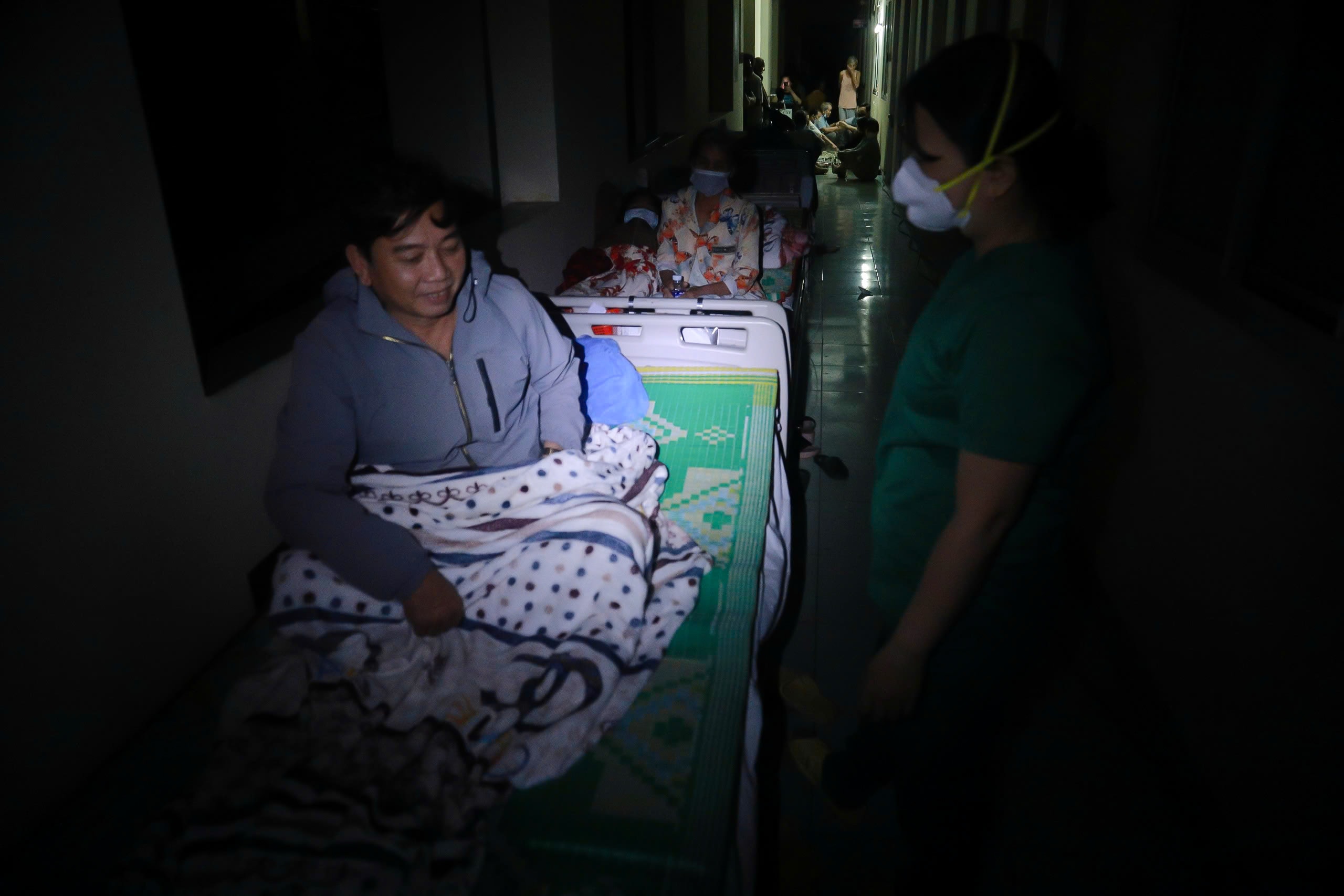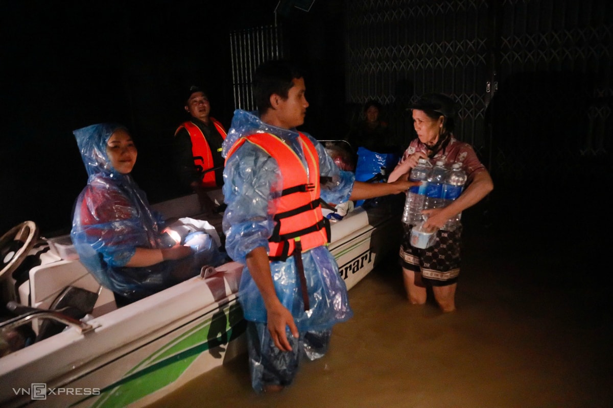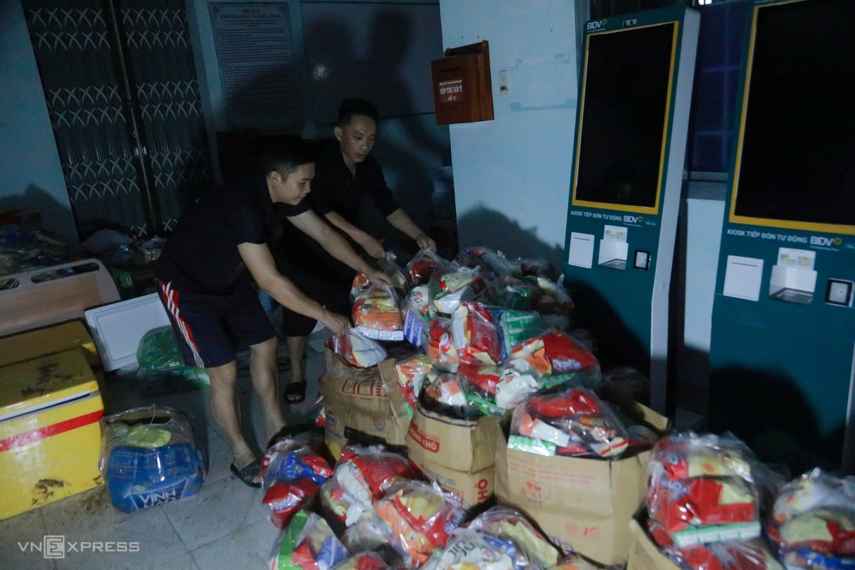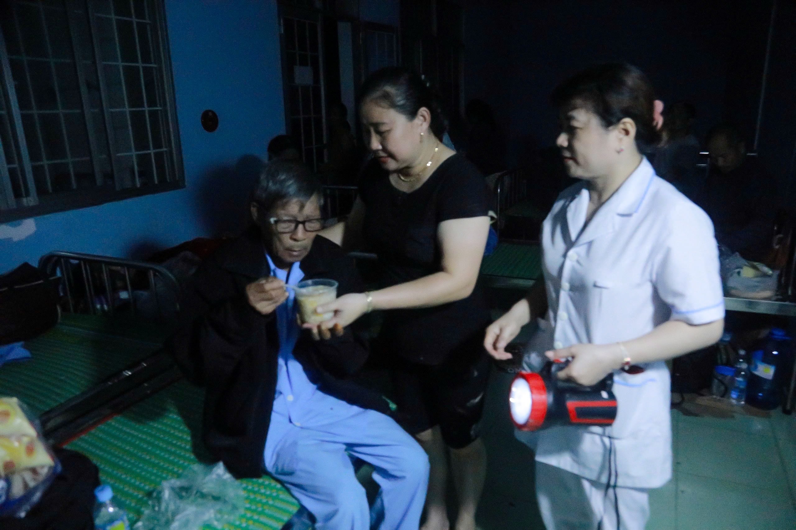 Nước lụt tràn vào, cúp điện, thiếu thức ăn nước uống và sóng điện thoại, đêm 20/11 y bác sĩ các bệnh viện ở Quy Nhơn soi đèn pin, tiếp tế lương thực cho người bệnh.