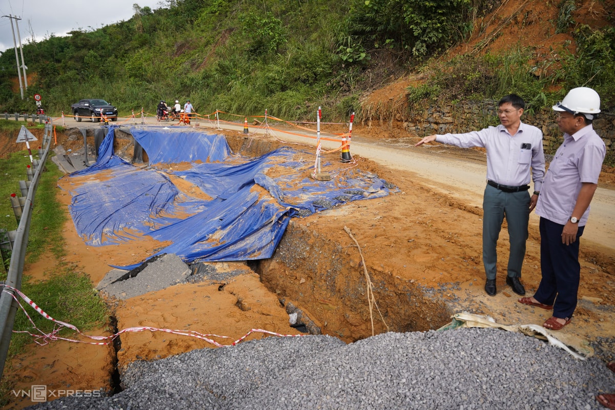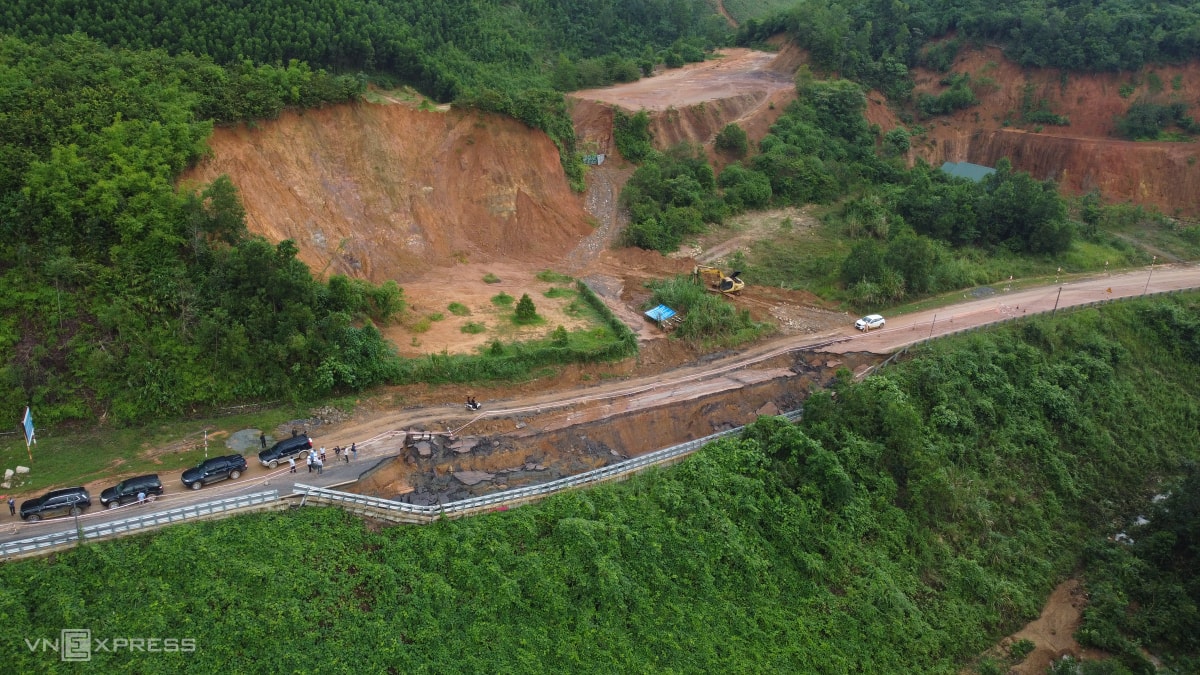 Đèo Khánh Lê bị xé toạc sau chuỗi sạt lở, sụt lún