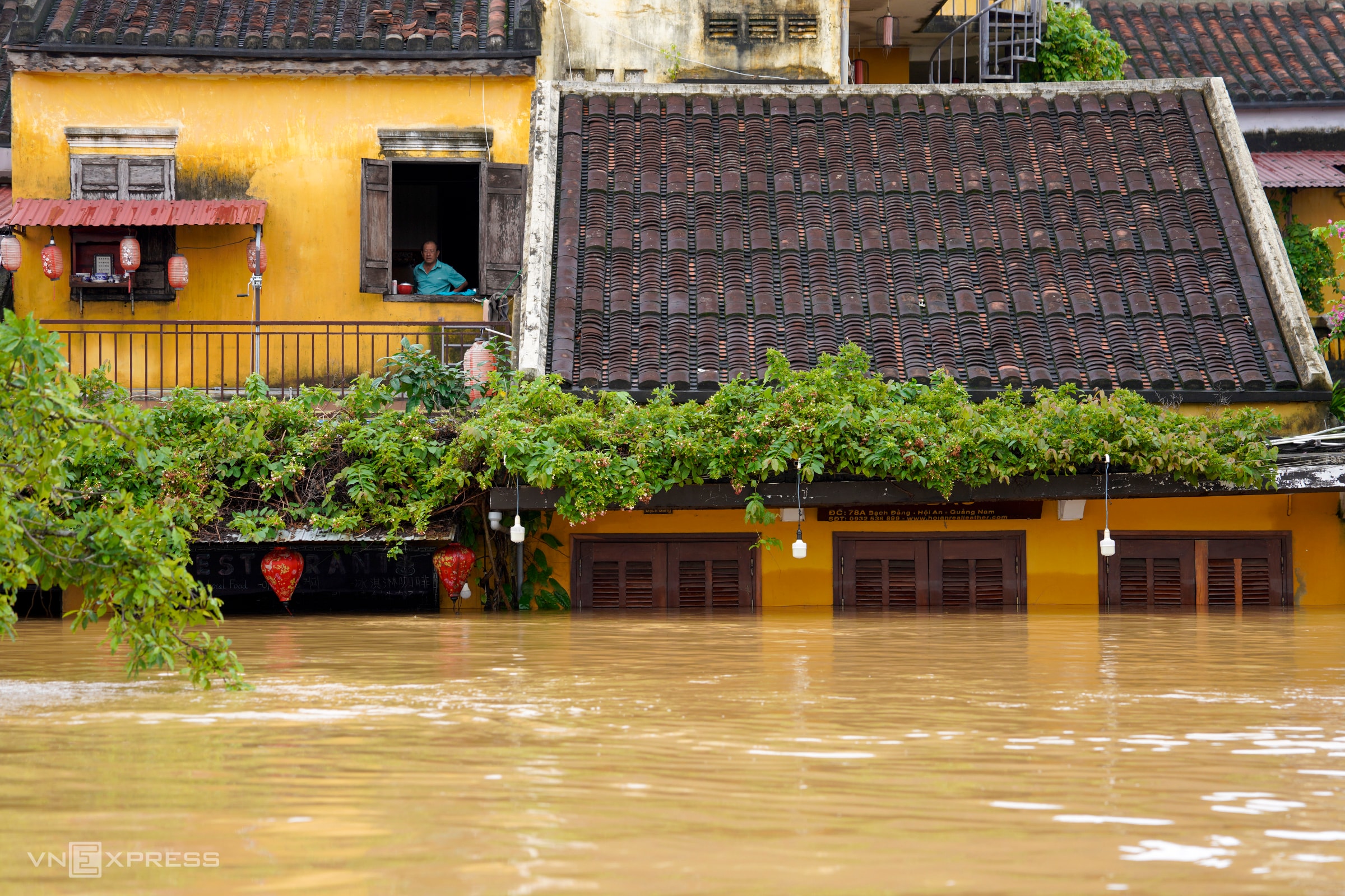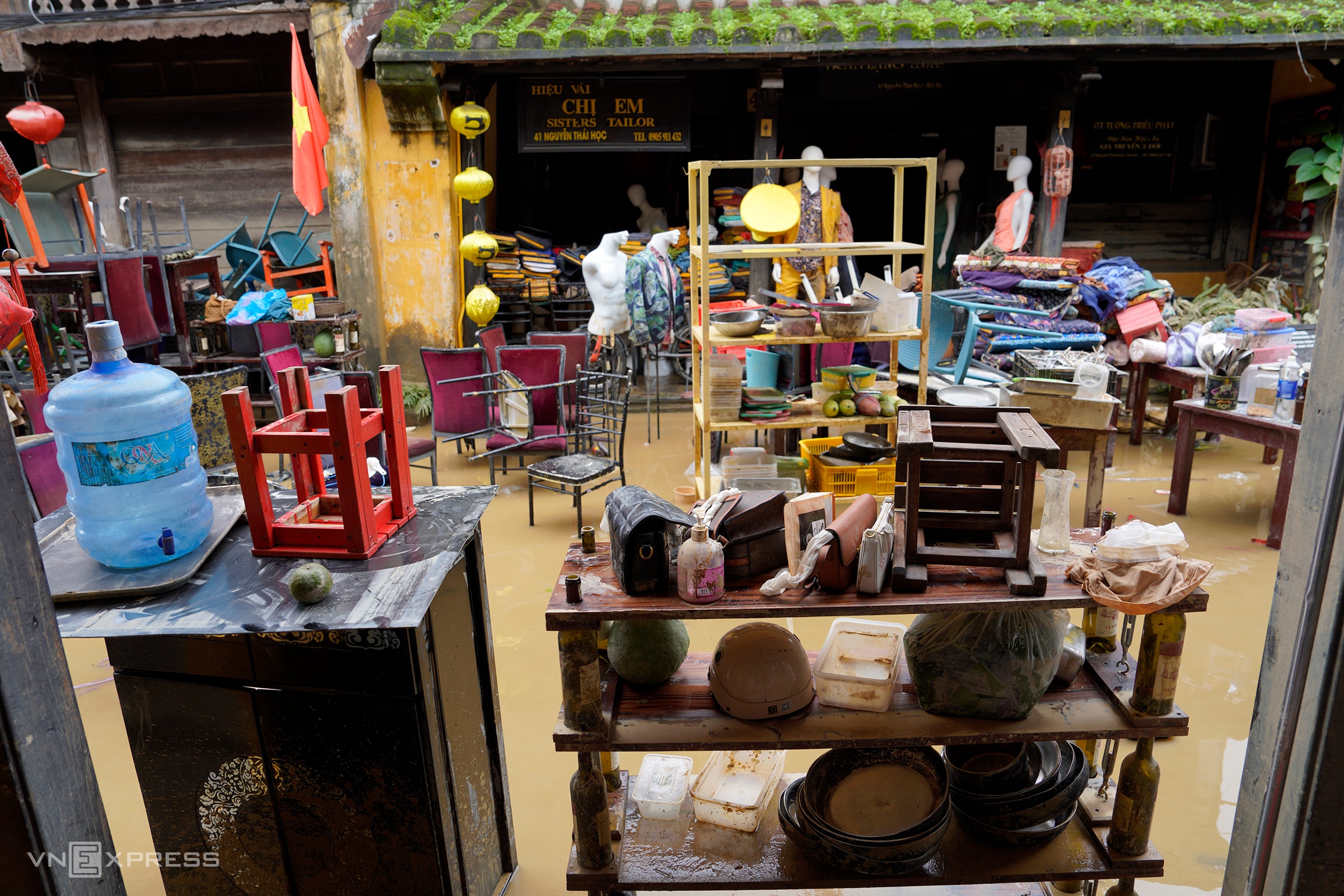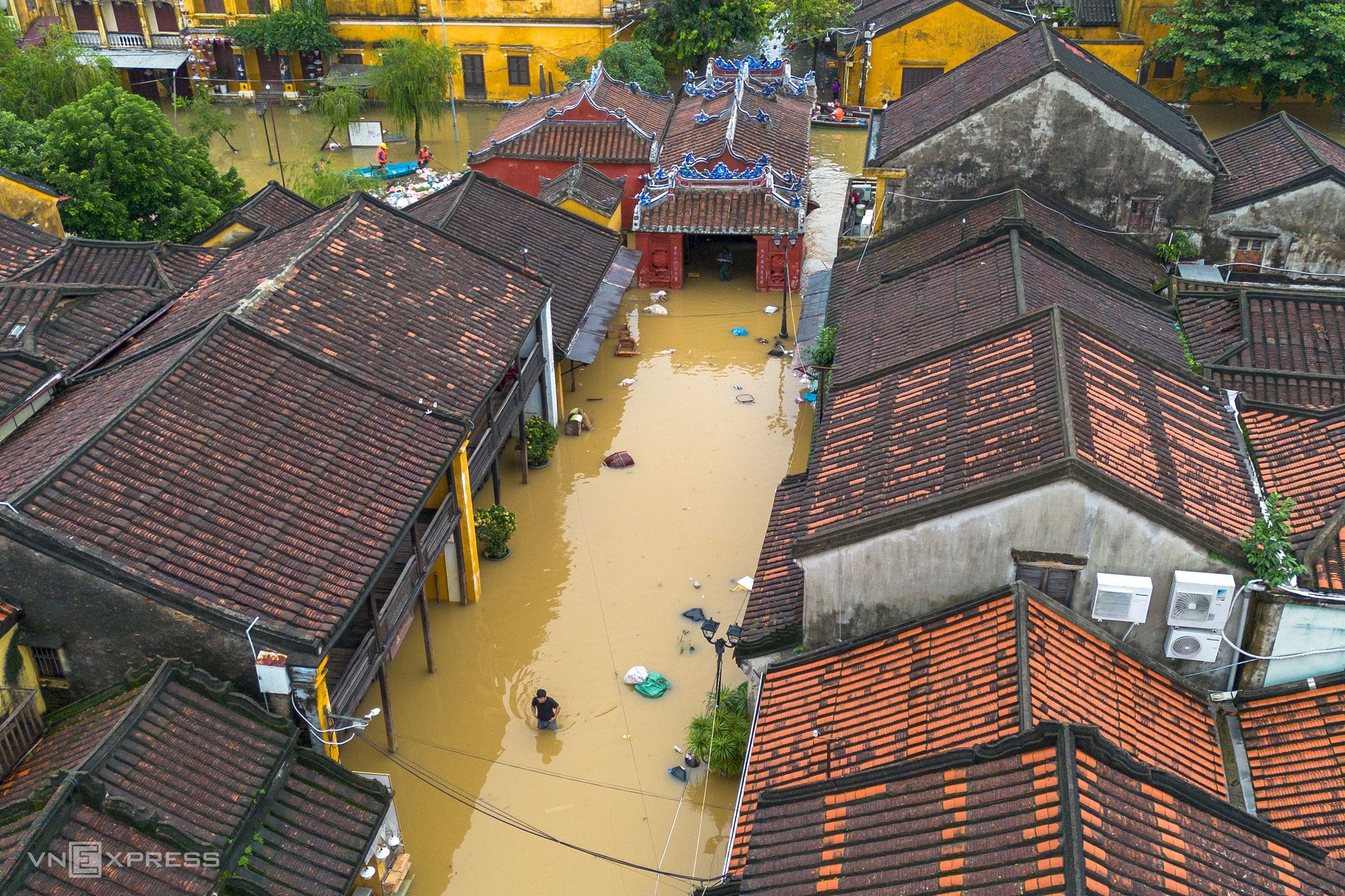 Nước lũ bắt đầu tràn vào phố cổ Hội An từ rạng sáng 27/10. Sau vài giờ, phố cổ hai bên sông Hoài bị ngập 1-2 m. Tàu thuyền vội vã đưa du khách, người dân thoát khỏi vùng ngập sâu. Nhiều người dân, hộ kinh doanh dọn tài sản lên cao ngang đợt lũ gần nhất năm 2007.