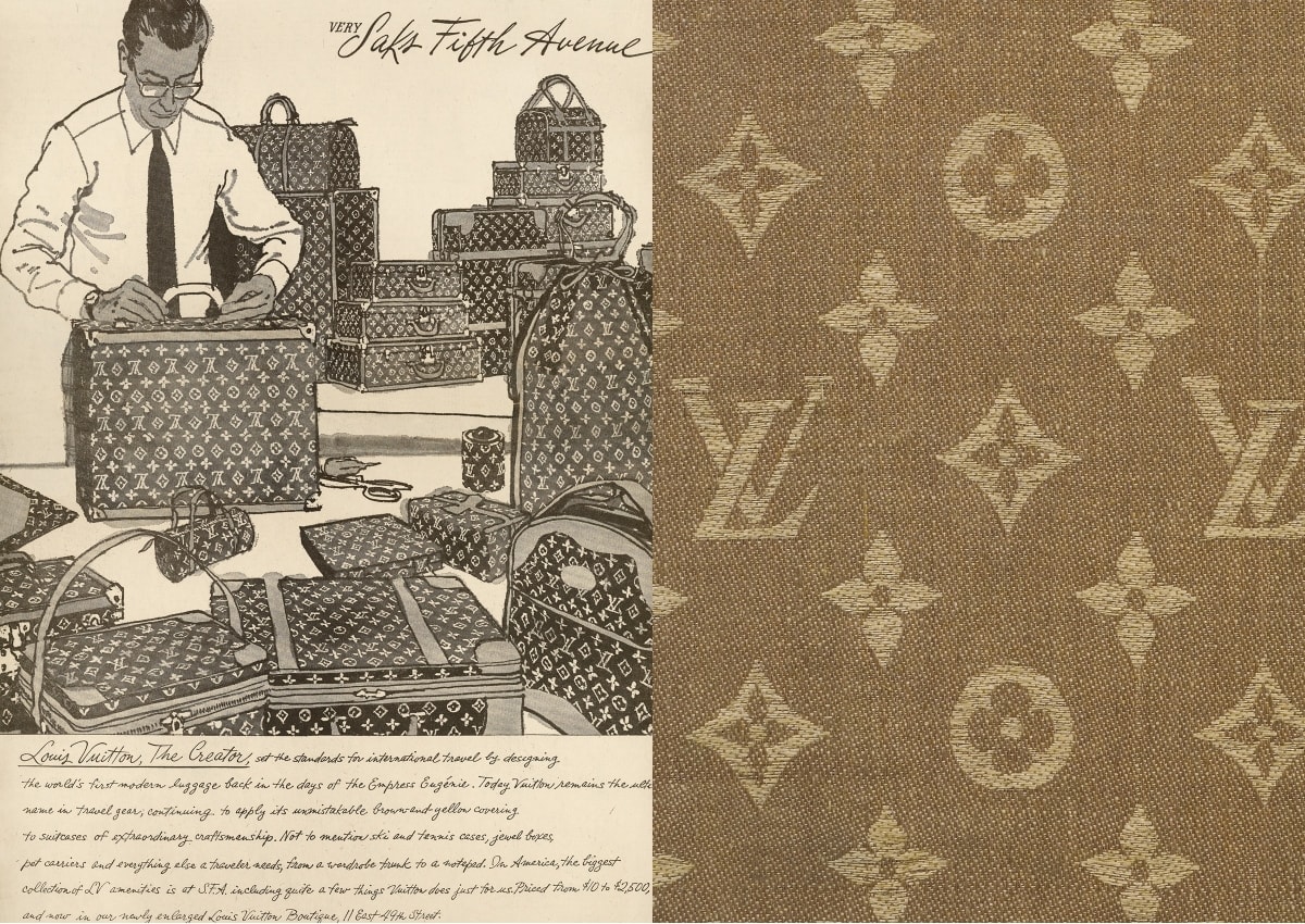 Thiết kế mang tính trang trí cao nhưng vẫn đảm bảo khả năng ứng dụng trên bề mặt vải bạt, chất liệu cốt lõi của các sản phẩm du hành Louis Vuitton đầu thế kỷ 20.