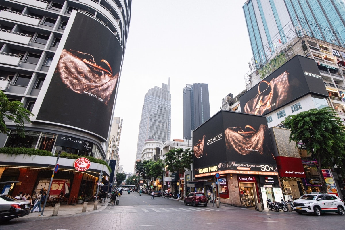 TP HCM là điểm đến trong chuỗi hoạt động quảng cáo ngoài trời (OOH) toàn cầu của Louis Vuitton, đưa di sản monogram 130 tuổi tiếp cận công chúng ở không gian đô thị. Theo đó, họa tiết LV đặc trưng xuất hiện trên hệ màn hình LED và billboard cỡ lớn tại nhiều tuyến đường trung tâm, thu hút sự chú ý của người dân lẫn du khách.