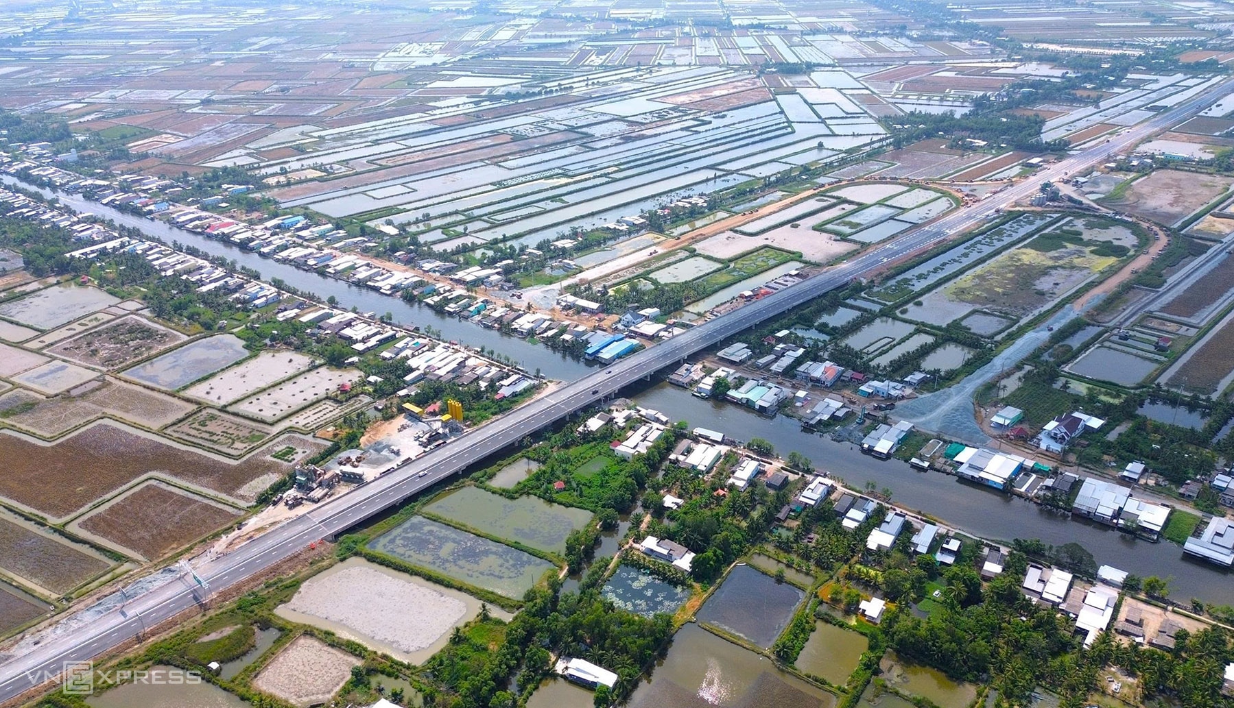 Đoạn cao tốc đi xuyên qua đồng lúa thuộc địa phận TP Cần Thơ.