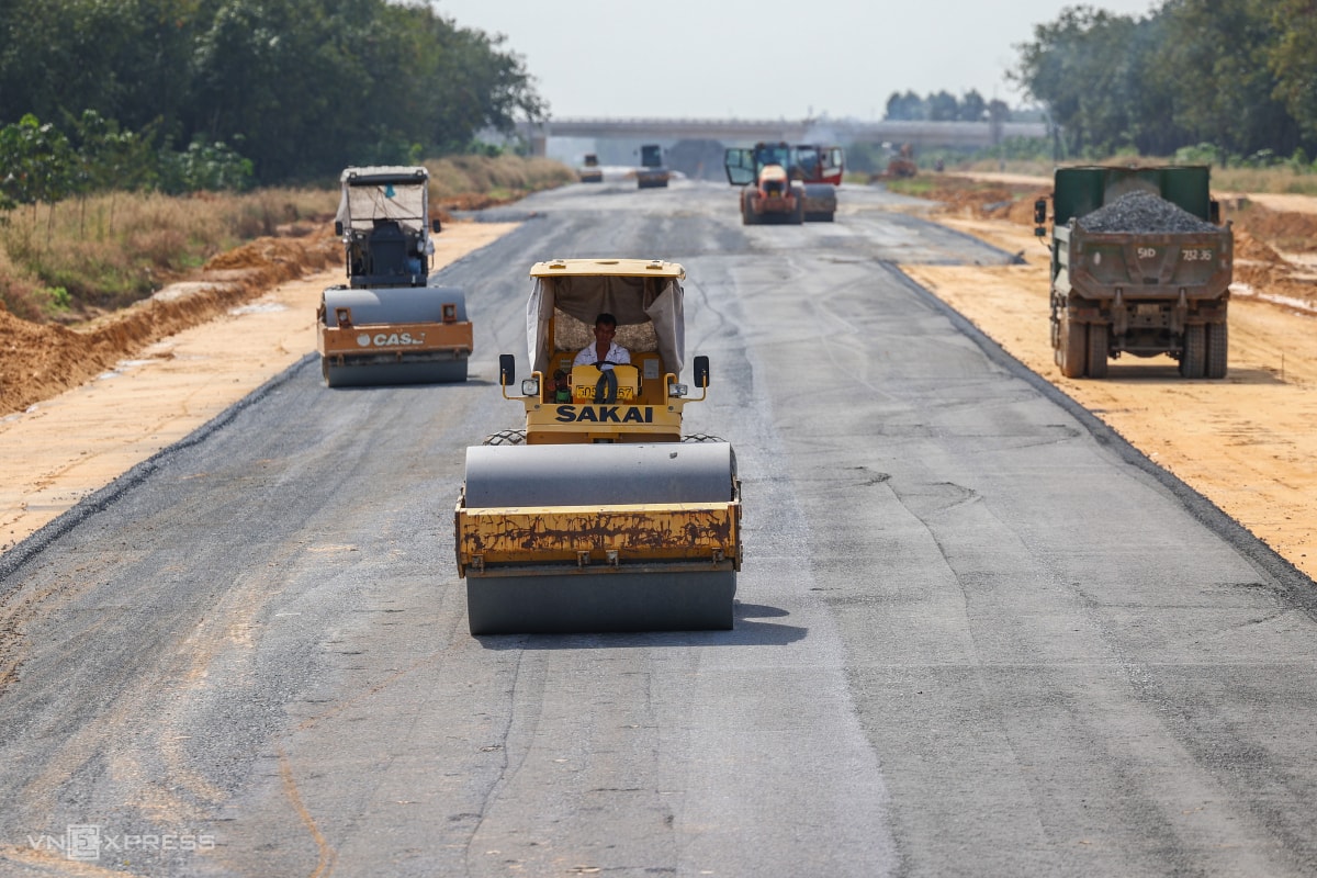Điểm đầu của cao tốc kết nối với đường Võ Nguyên Giáp (TP Biên Hòa cũ) còn nhiều đoạn đang được lu nèn nền trước khi thảm nhựa, để kịp thông xe kỹ thuật.