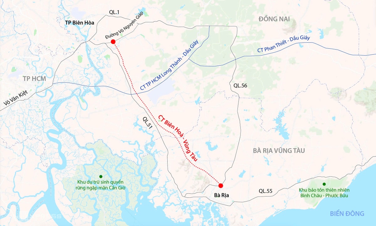 Sau khi cao tốc và các tuyến kết nối hoàn thành sẽ tạo đường liền mạch từ TP Biên Hòa đến TP Vũng Tàu, rút ngắn thời gian di chuyển giữa trung tâm TP HCM tới thành phố biển từ 120 phút xuống còn 70 phút.