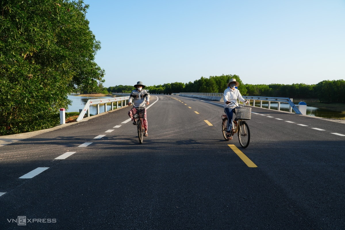 Tuyến đường vừa hoàn thành đã thu hút nhiều người dân đạp xe, đi bộ tập thể dục mỗi sáng và chiều.