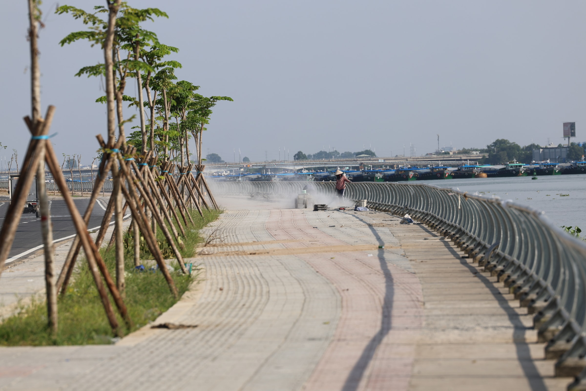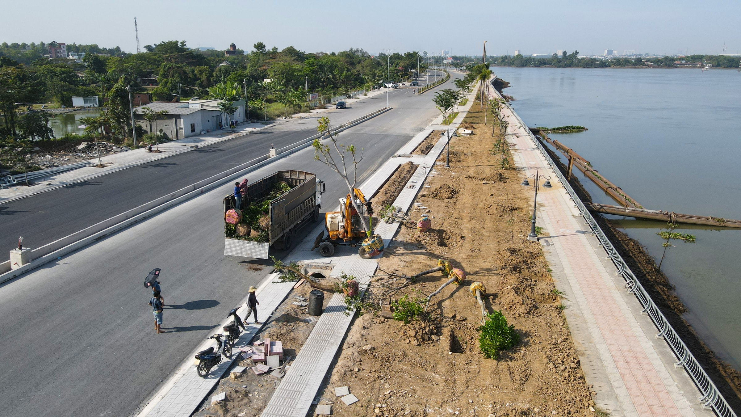 Dự án đường ven sông đi qua nhà cổ 100 tuổi đang hoàn thiện những công đoạn cuối cùng để thông xe trước Tết Nguyên đán.