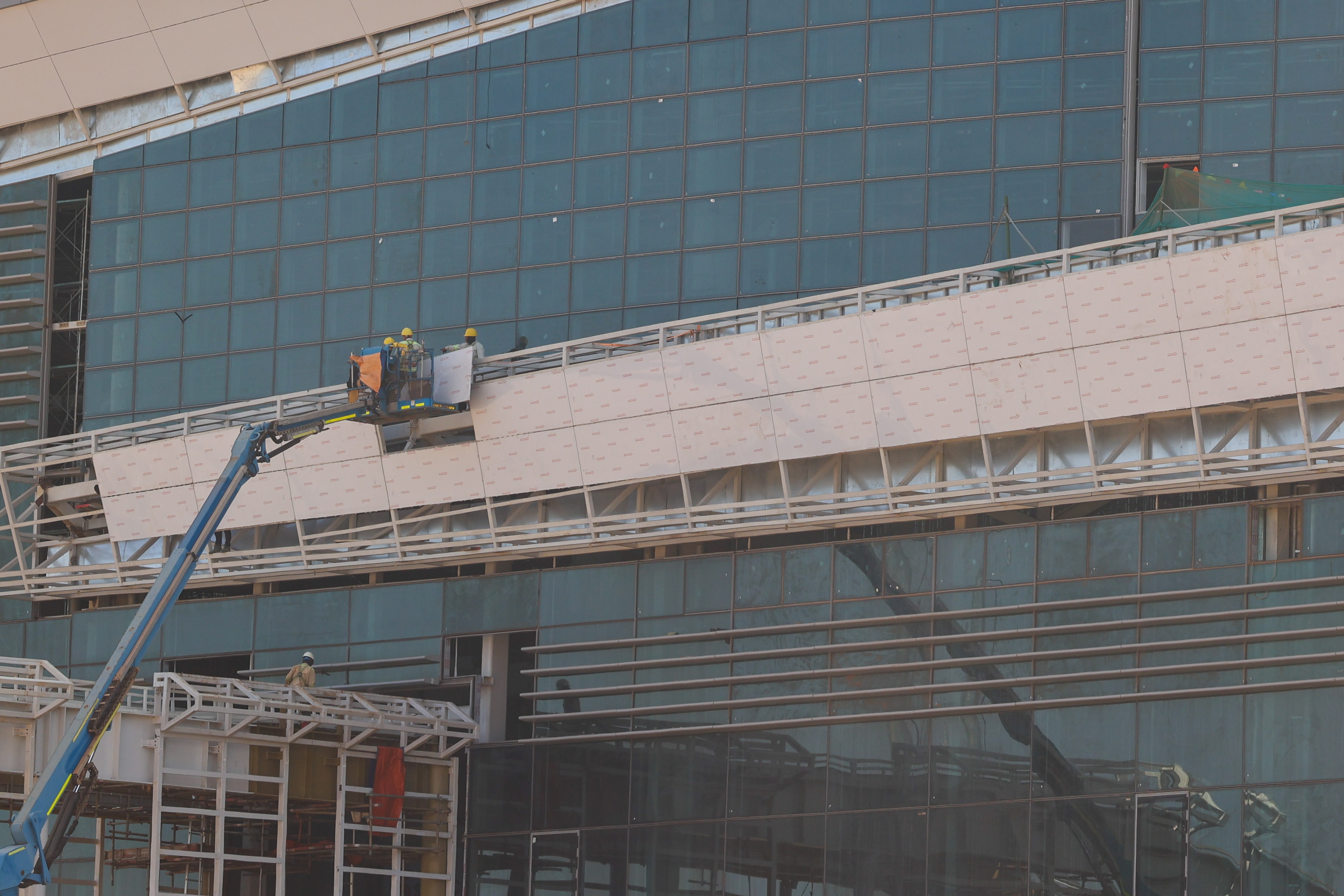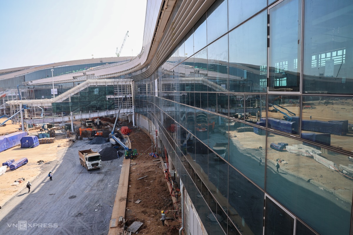 Mặt bên ngoài nhà ga cũng lắp kính được khoảng 80%. Theo nhà thầu, diện tích kính phủ bề mặt nhà ga khoảng 70.000 m2.
