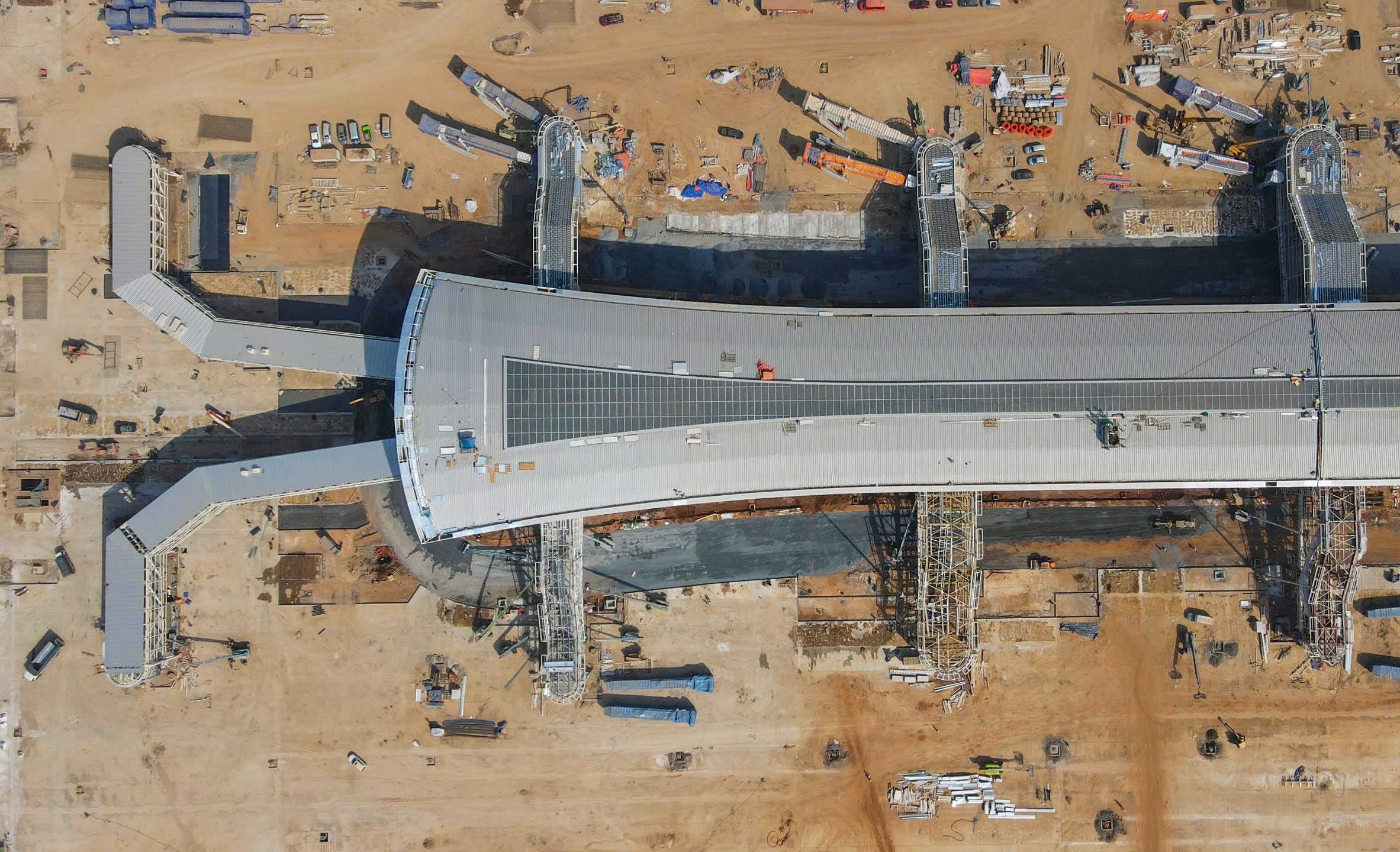 Sau hai năm xây dựng, nhà ga hành khách mức đầu tư 35.000 tỷ đồng – “trái tim” dự án - xong phần lợp mái, đang lắp đặt ống lồng, trang thiết bị, hệ thống vận hành tích hợp Al.