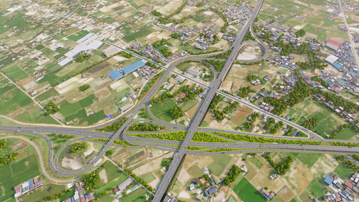 Phối cảnh nút giao ba cao tốc Vành đai 3, Bến Lức Long Thành và TP HCM - Trung Lương khi hoàn thành.