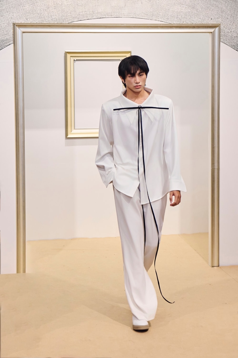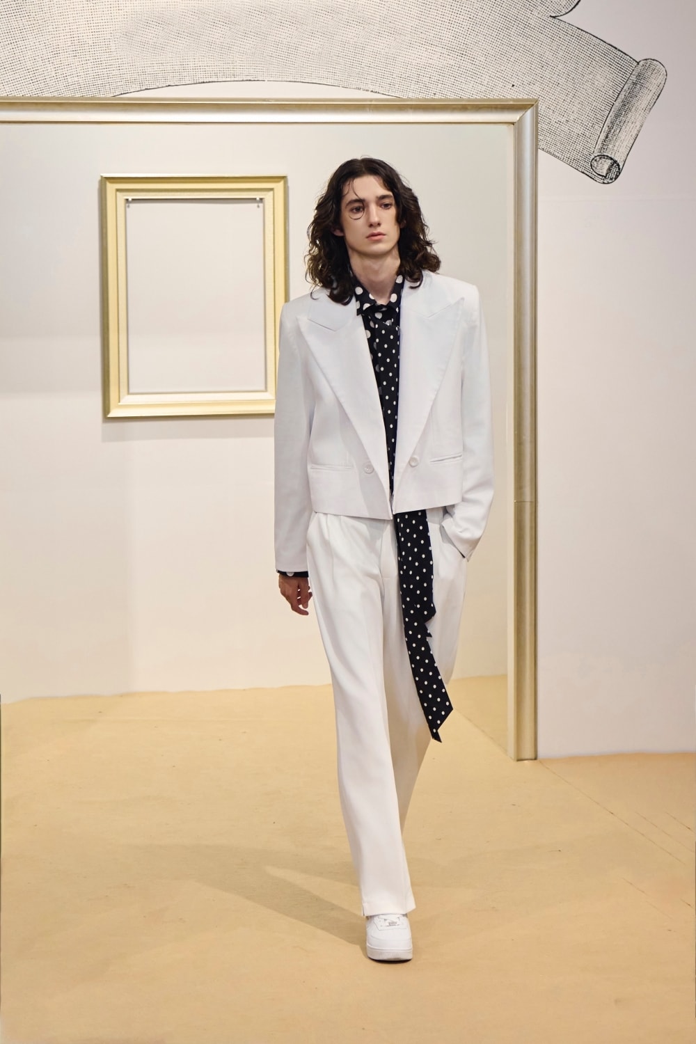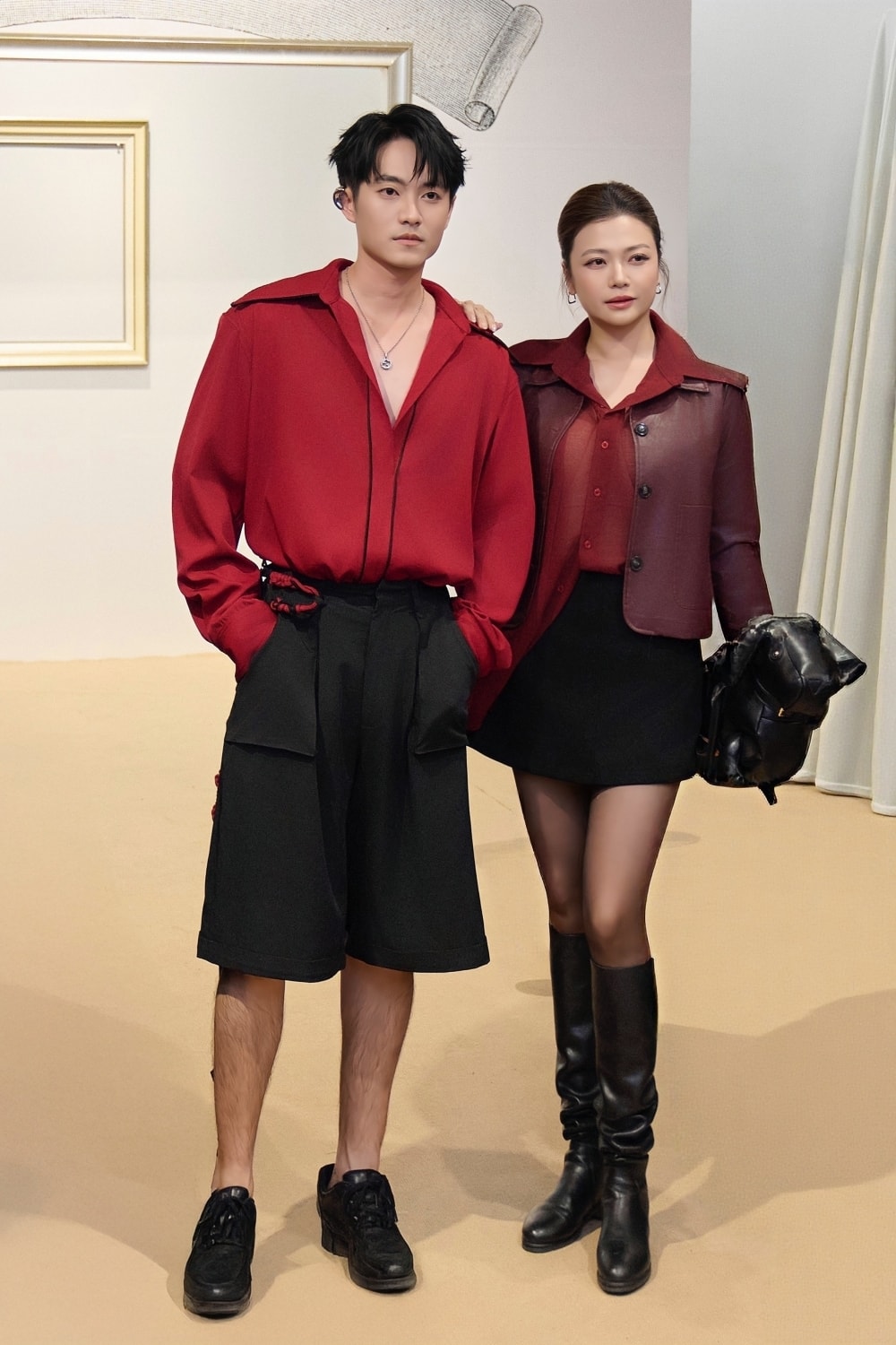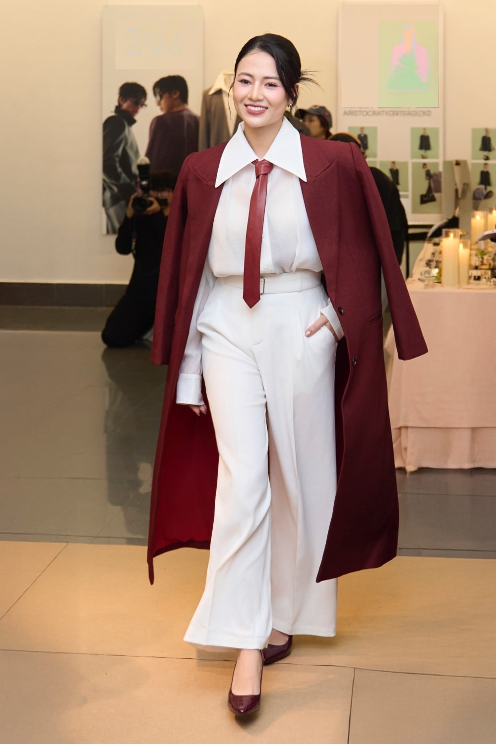 Diễn viên Kiều Anh của phim "Phía trước là bầu trời" diện váy ngắn với bốt cao, làm vedette trong show thời trang.