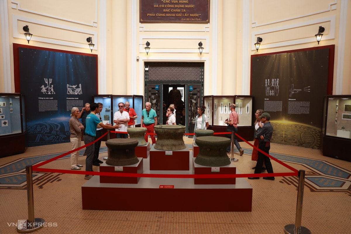 Triển lãm chủ đề Đồng vọng khai mạc ngày 27/1, giới thiệu các hiện vật gồm công cụ sản xuất, đồ dùng sinh hoạt, trang sức, vũ khí và trống đồng của văn hóa Đông Sơn.