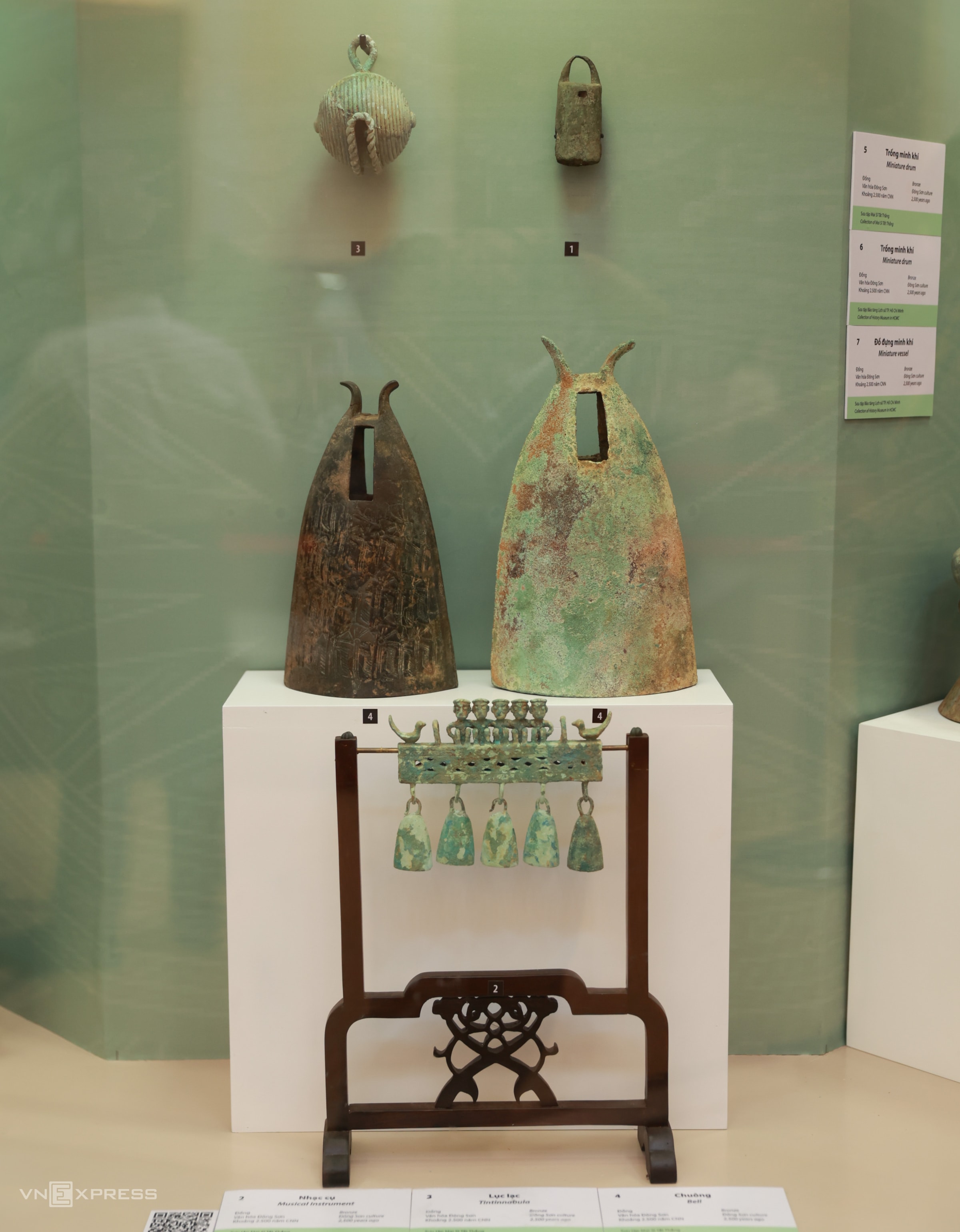 Ngoài trống, triển lãm còn trưng bày các nhạc cụ của người Việt cổ như lục lạc, chuông của nhà sưu tập Mai Sĩ Tất Thắng.