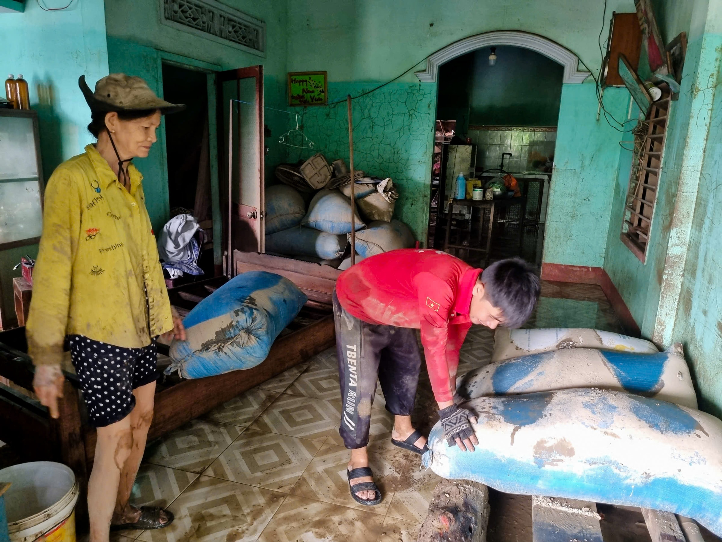Người dân vùng rốn lũ Đông Hòa, Hòa Thịnh, Tây Hòa tất bật dọn dẹp nhà, xưởng, trường học sau trận lũ lịch sử.