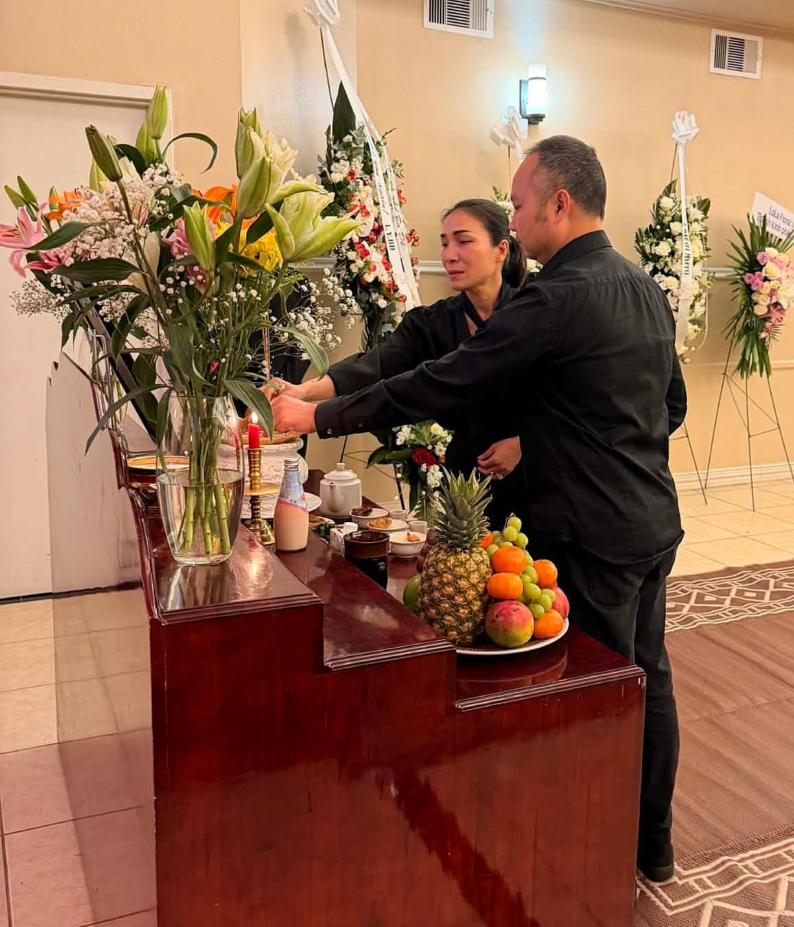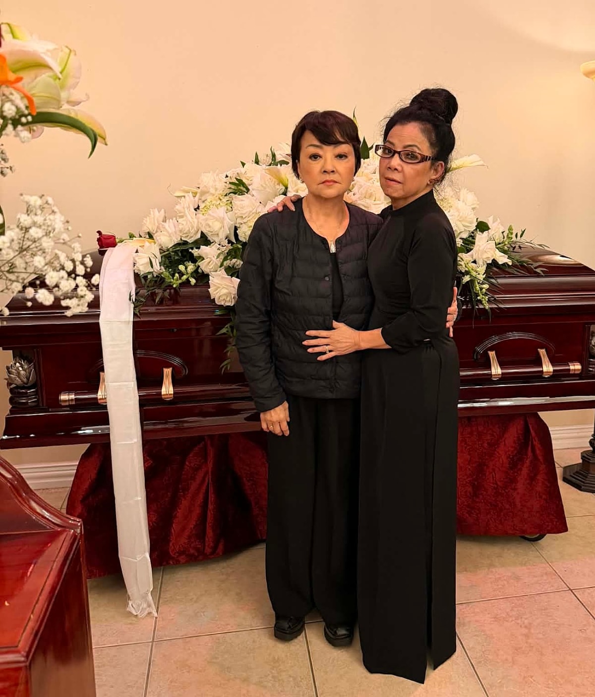 Ca sĩ Hương Lan, Trizzie Phương Trinh, Hồng Ngọc cùng bạn bè thắp hương tưởng nhớ Kasim Hoàng Vũ trong tang lễ tại Mỹ.
