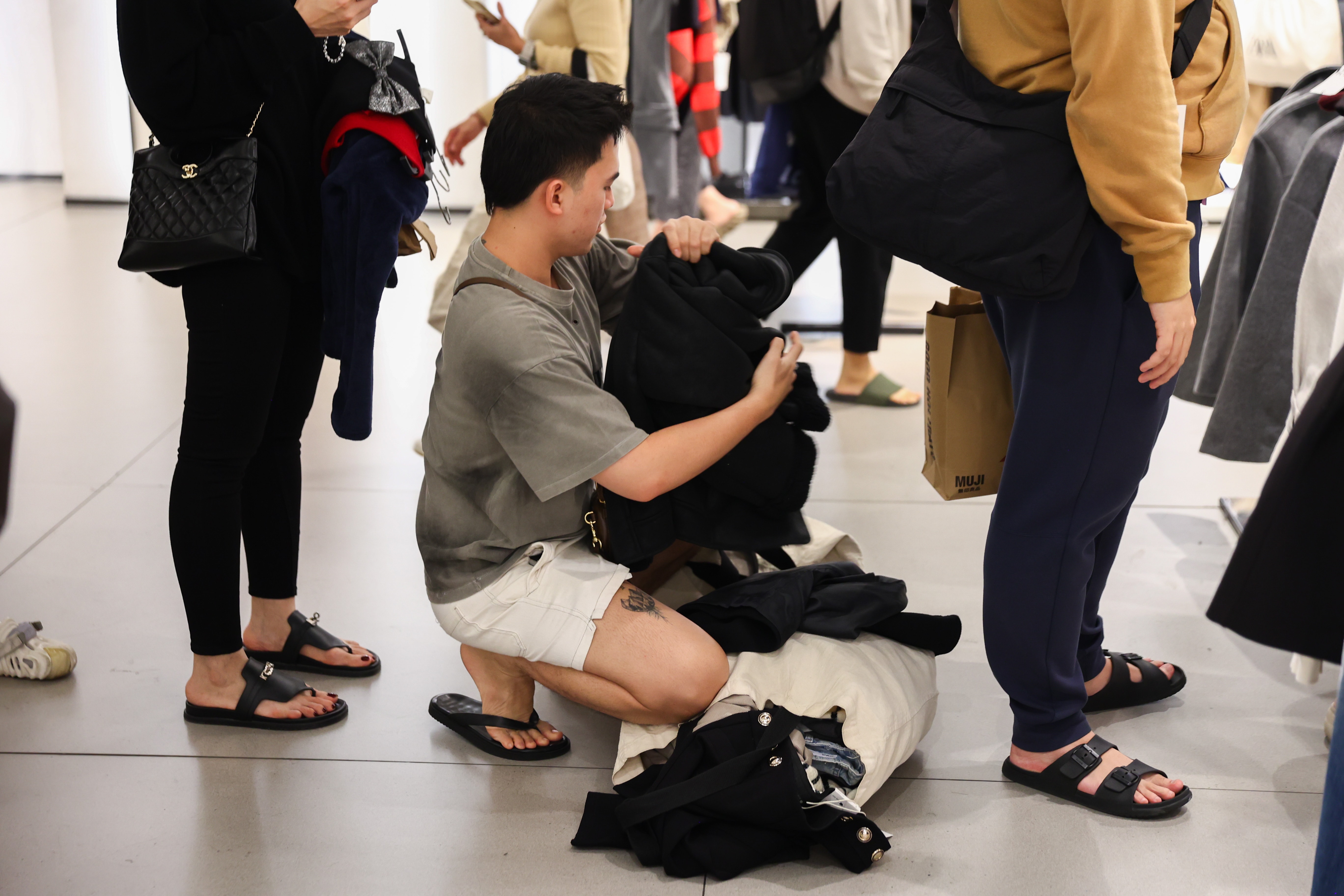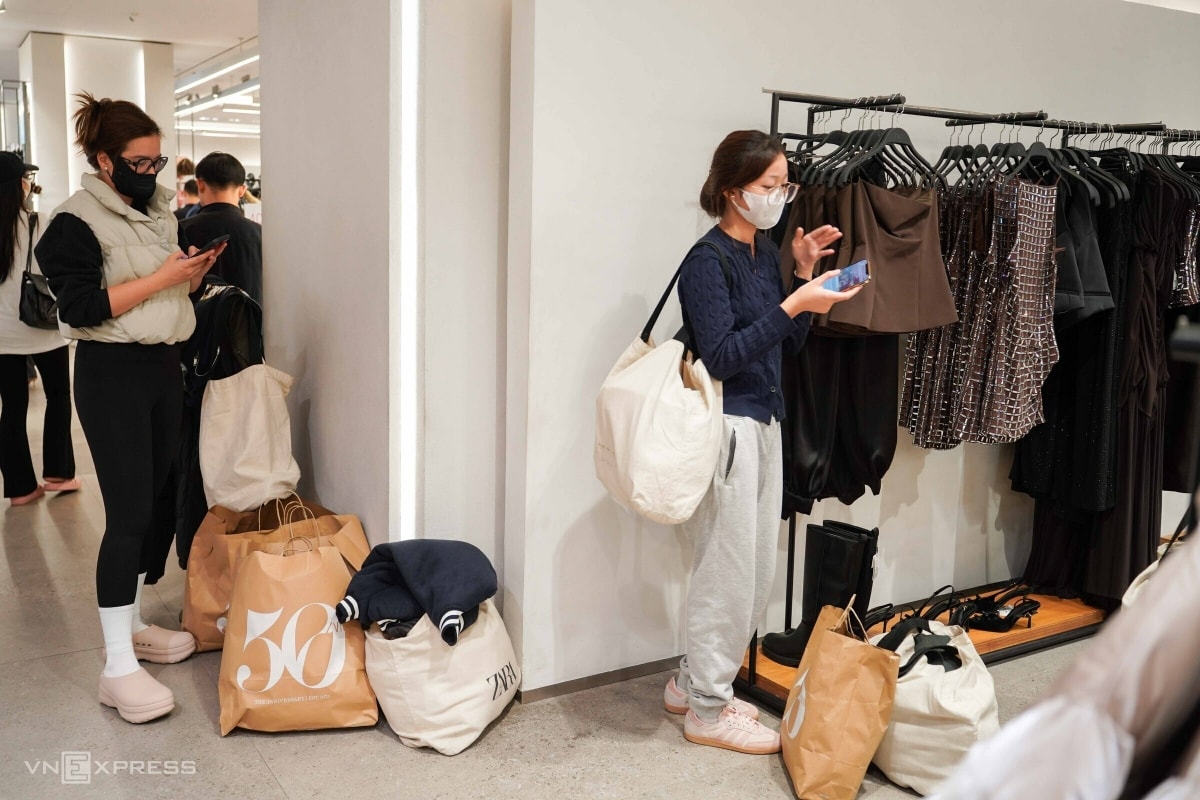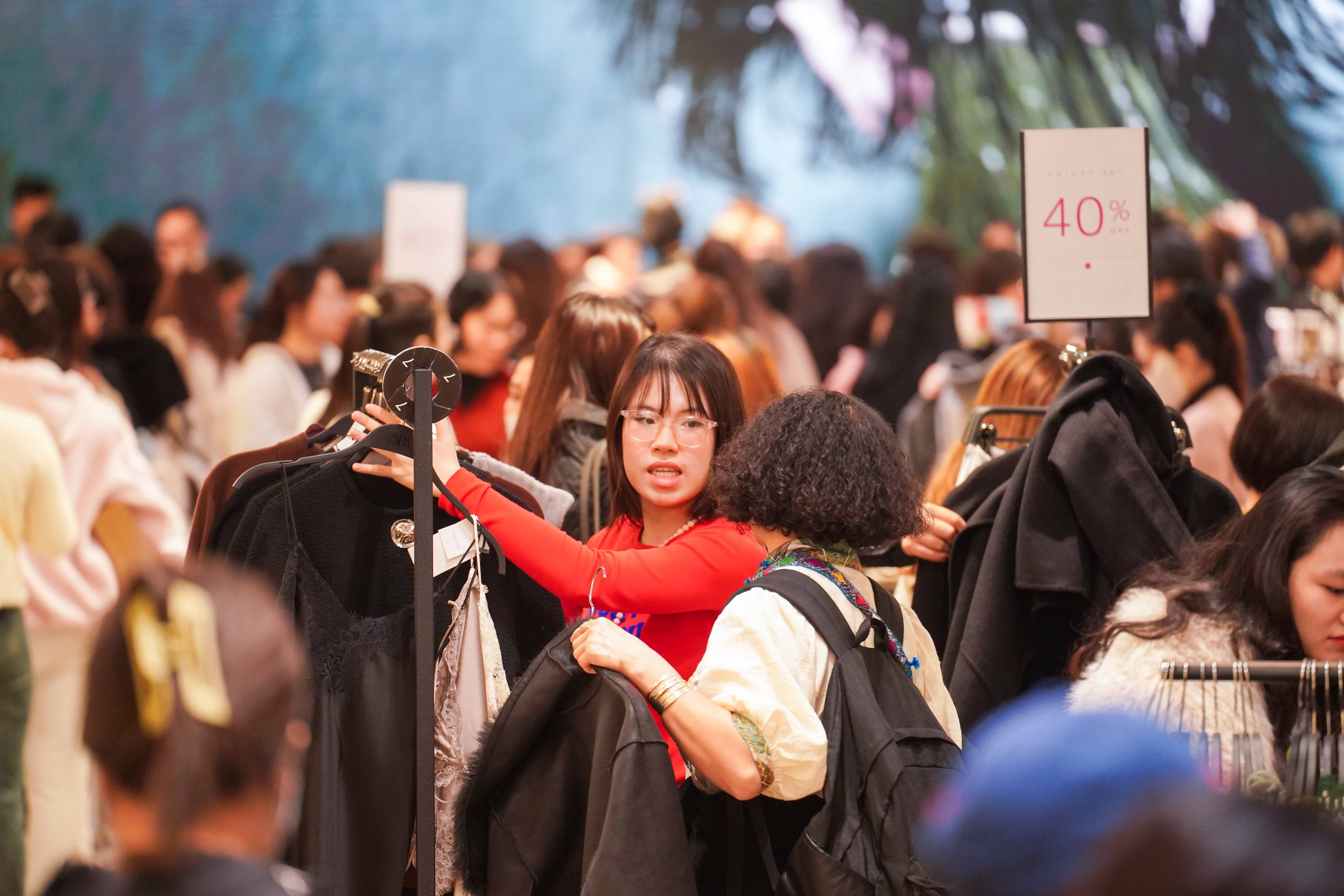Chị Tuyết Phương, 24 tuổi với gần chục túi đồ trên tay, chủ yếu là phụ kiện thời trang. Theo chị Phương, nhiều món hàng bình thường có giá tiền triệu nhưng nay chỉ còn vài trăm nghìn đồng, giúp tiết kiệm được nhiều chi phí mua sắm.