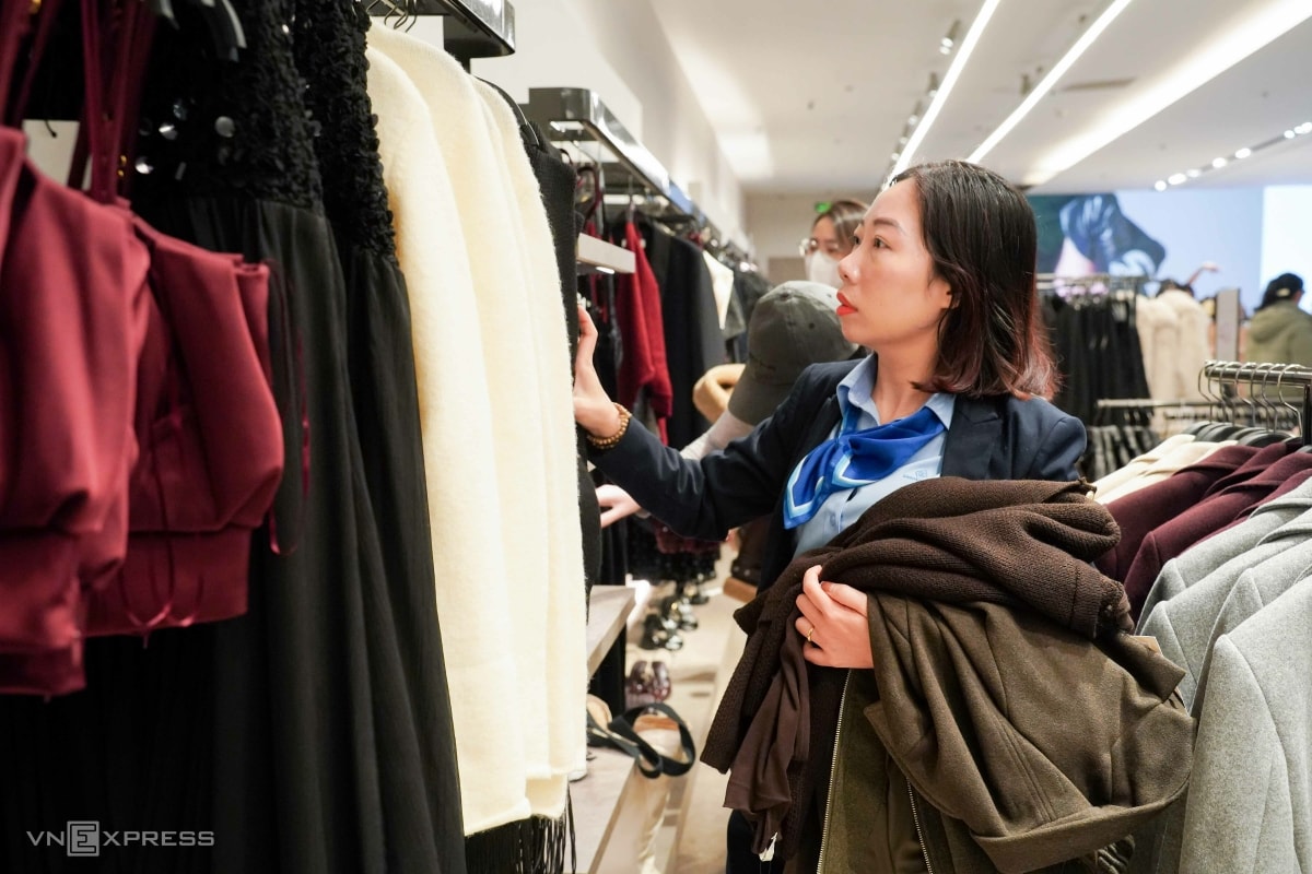 Ngay sau giờ tan học, Bùi Lam Giang (THPT Lê Quý Đôn) cùng gia đình tới trung tâm thương mại mua sắm. "Sắp đến Tết nên em tranh thủ đợt giảm giá sâu để mua quần áo", nữ sinh cho biết.