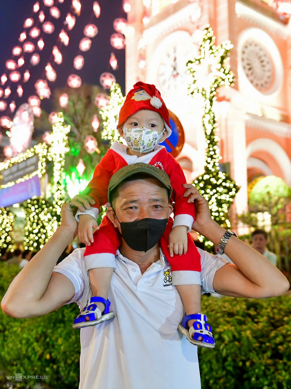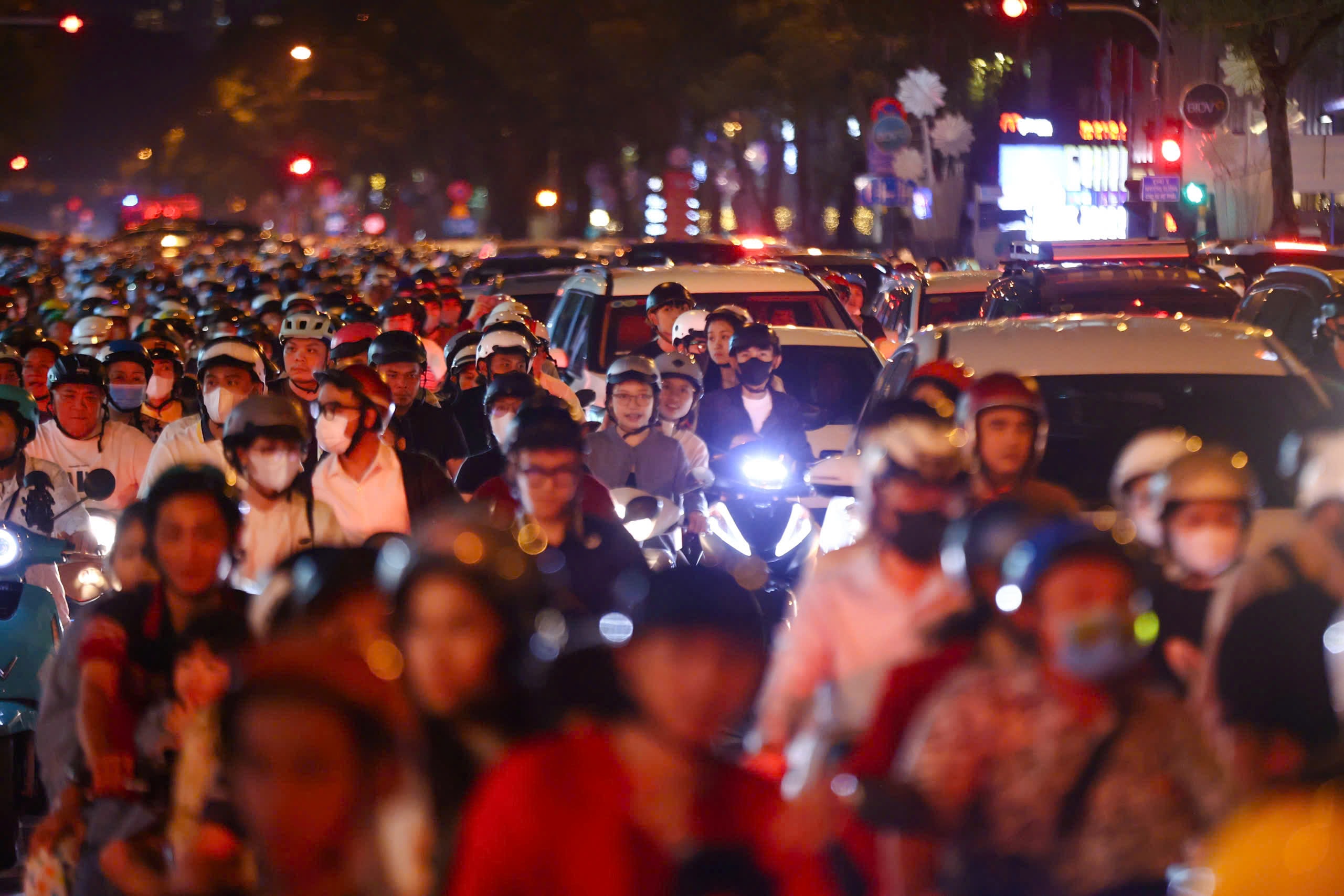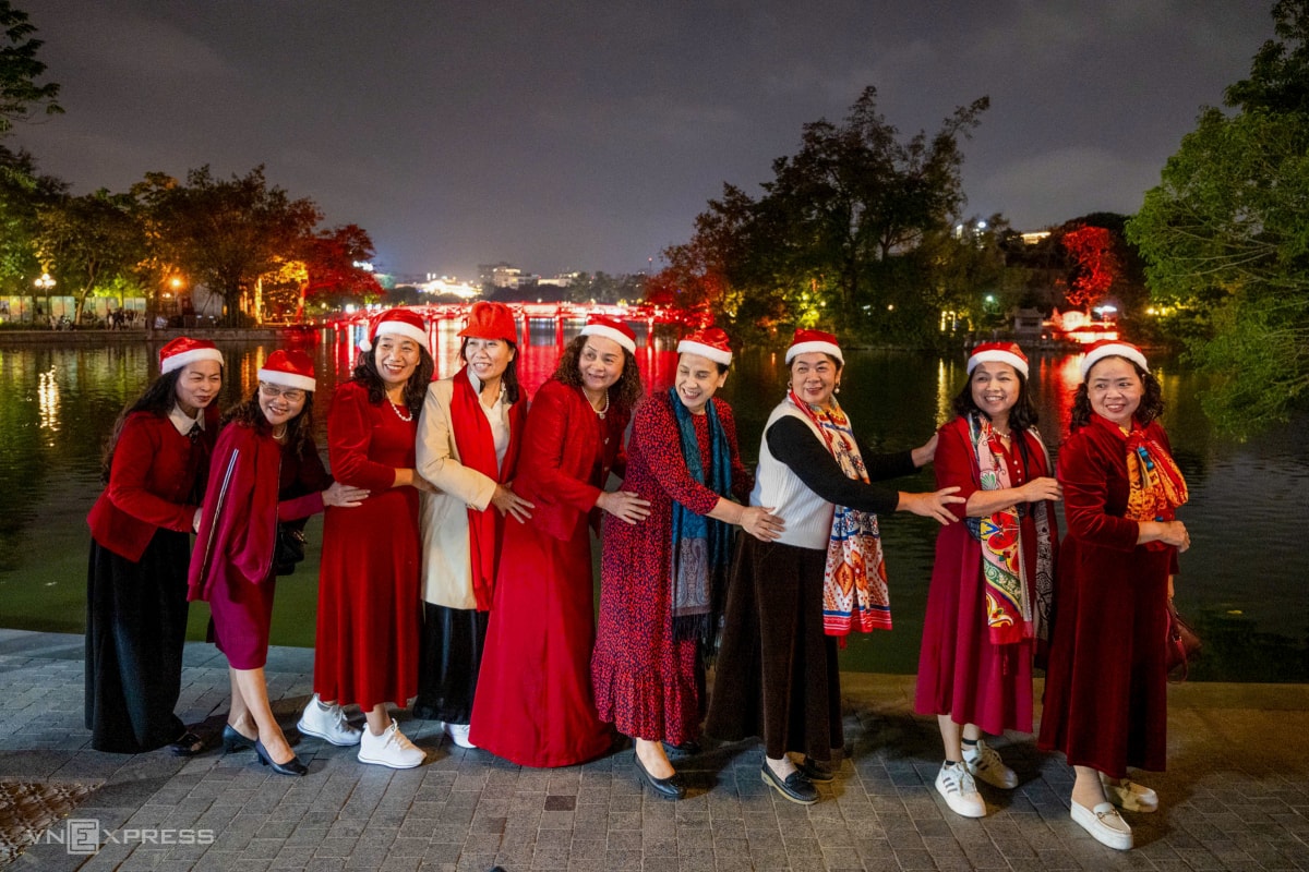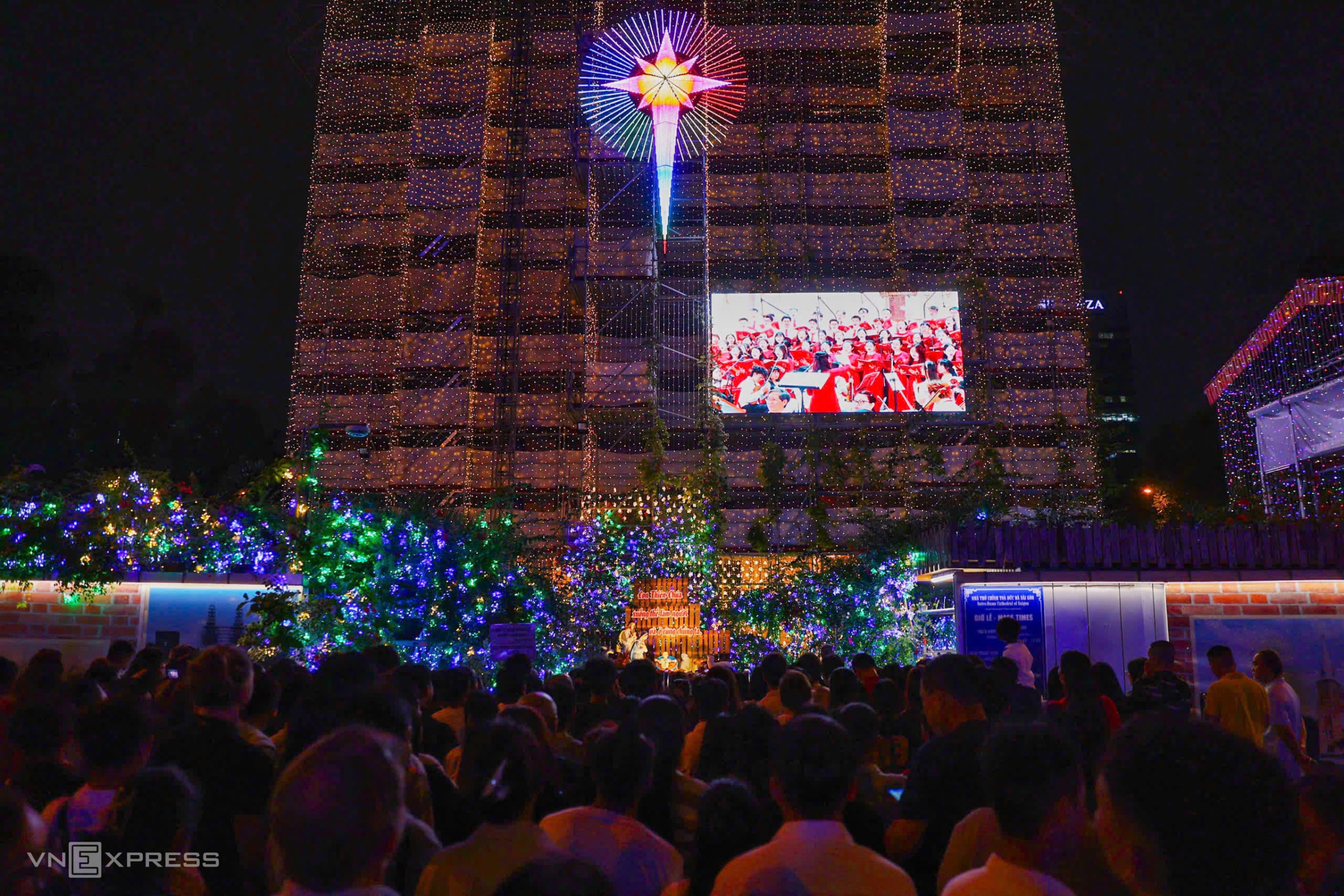 Người dân Hà Nội, TP HCM đổ về nhà thờ, xóm đạo, các tuyến phố trung tâm để vui chơi, mừng Chúa Giáng sinh, tối 24/12.