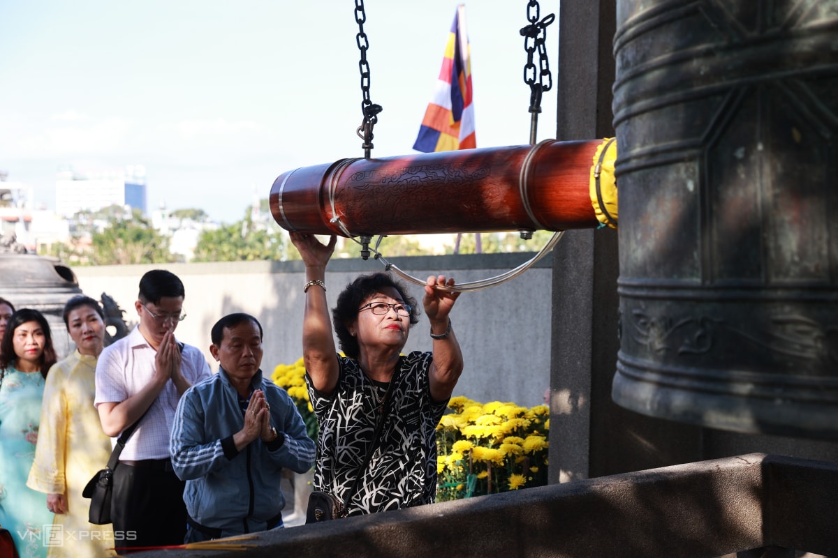 Dòng người chờ gõ chuông chùa ngày đầu năm ở TP HCM