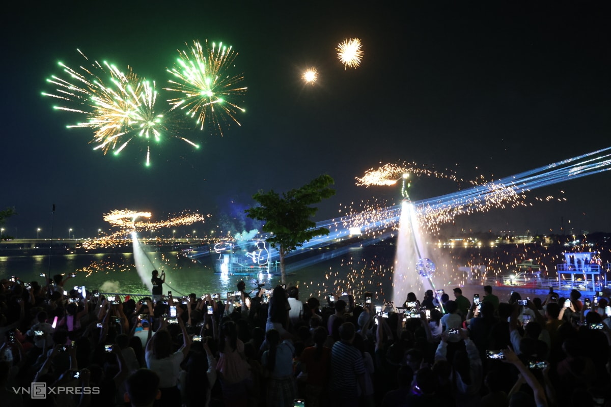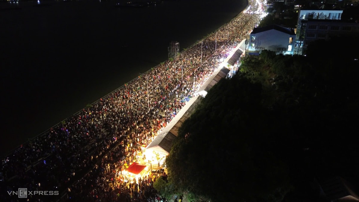 Khán giả đứng kín con đường ven sông dài hơn một km để xem trình diễn Flyboard.