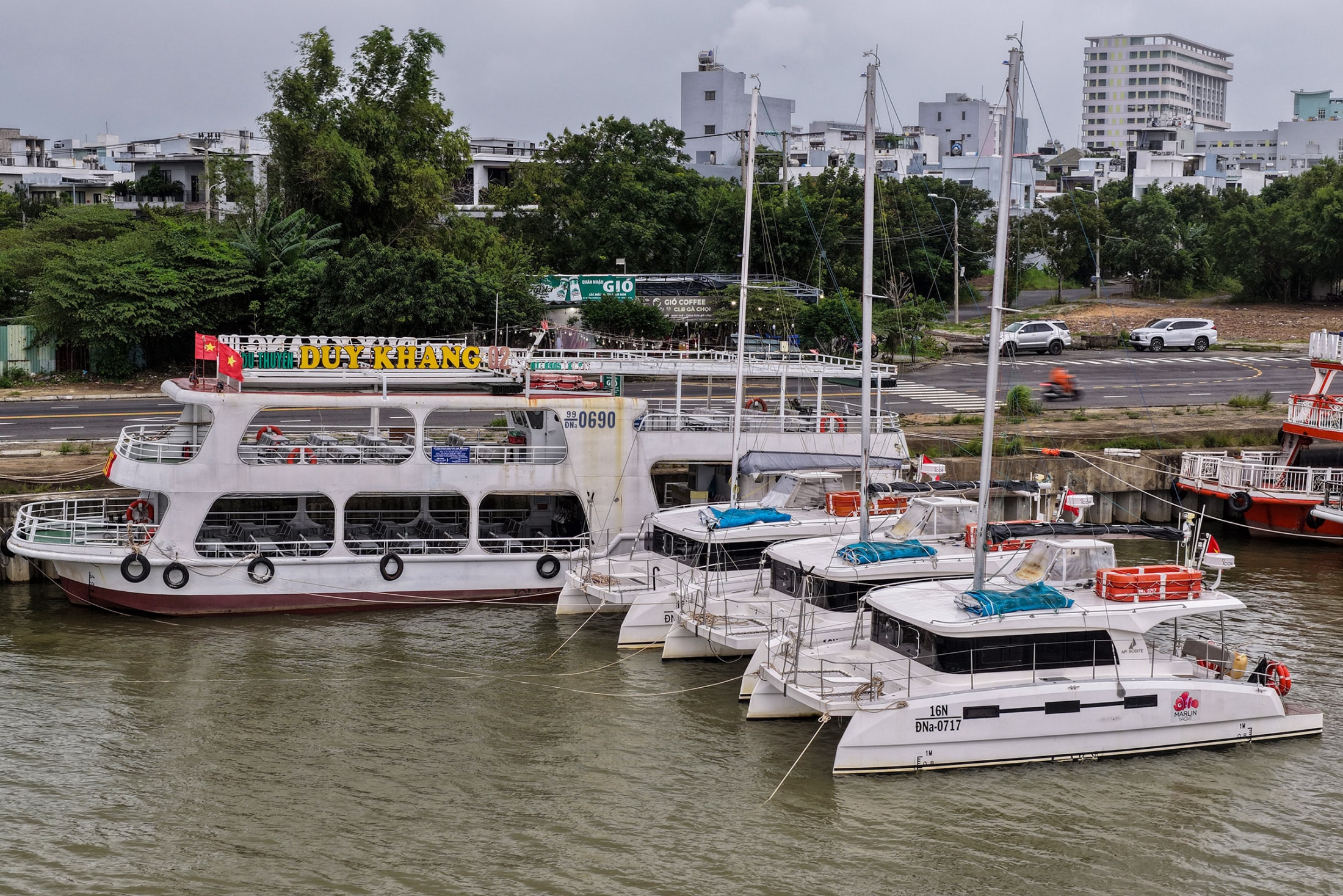 Nhiều du thuyền cao cấp như Beneteau Gran Turismo 40, Galeon 400 Fly... tạm dừng đón khách từ chiều 22/10, được đưa vào vào sâu cuối sông Hàn neo đậu để trú tránh mưa lớn sau bão.