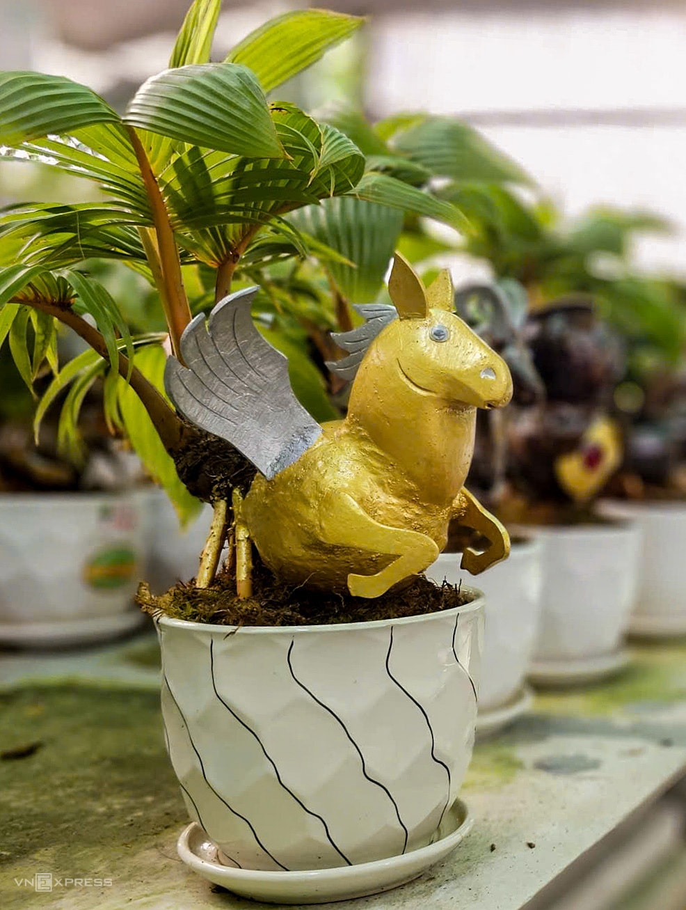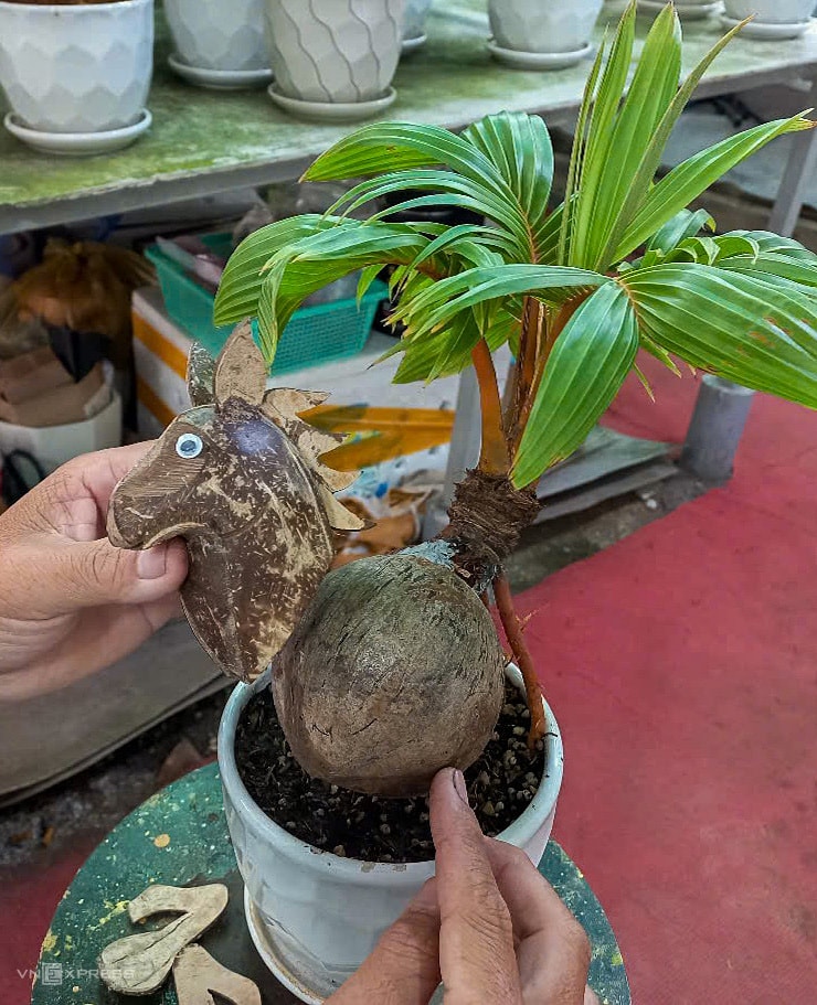 Dừa dát vàng, tạo bonsai hình ngựa hút khách