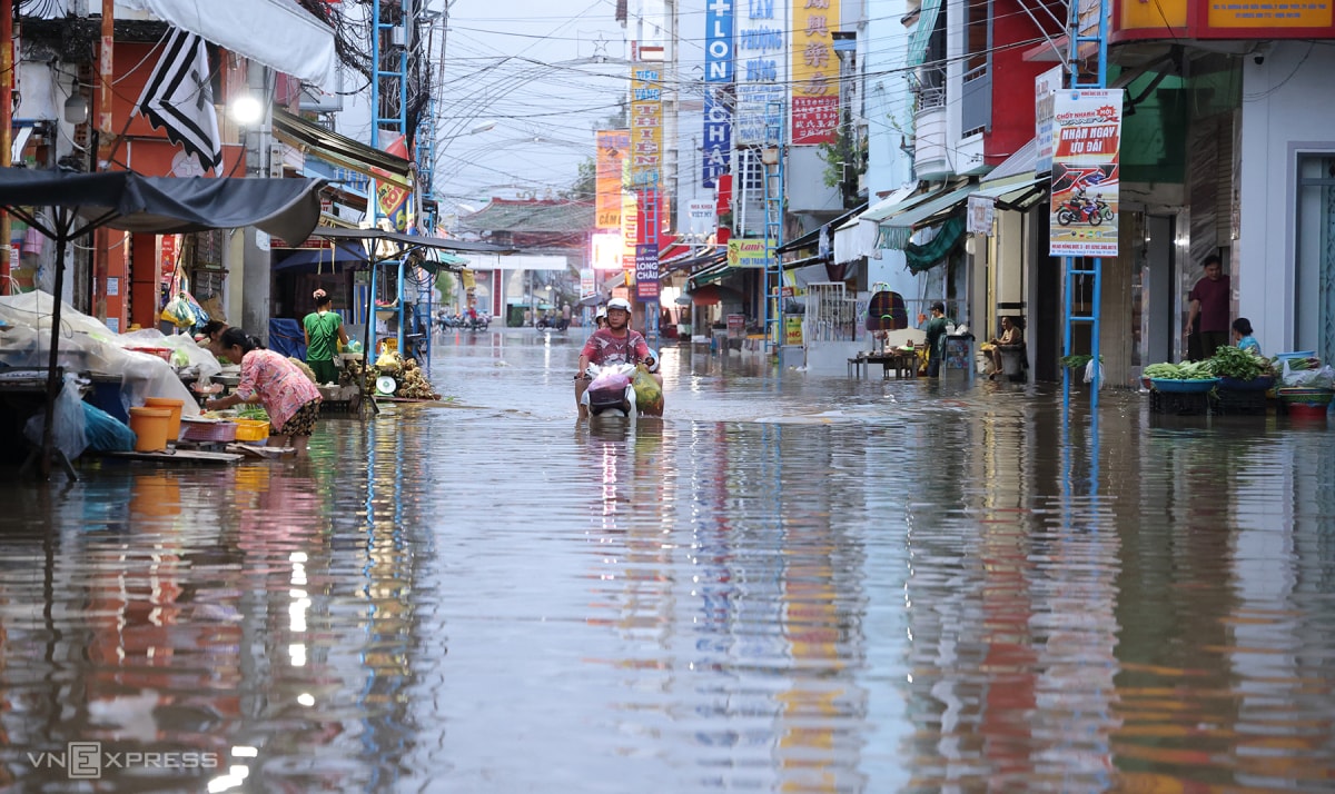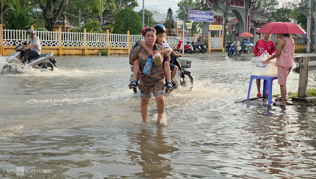 Triều cường trên sông Hậu tại Cần Thơ lên mức 2,14-2,29 m, cao nhất từ đầu năm, vượt 2 cm so đỉnh lịch sử năm 2022, khiến nhiều nơi ngập sâu.