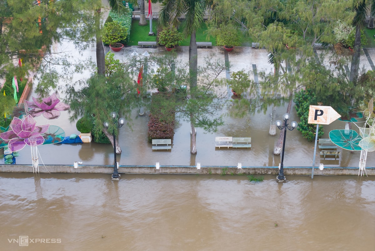 Đường phố, công viên ngập sâu trong đỉnh triều lịch sử ở Cần Thơ