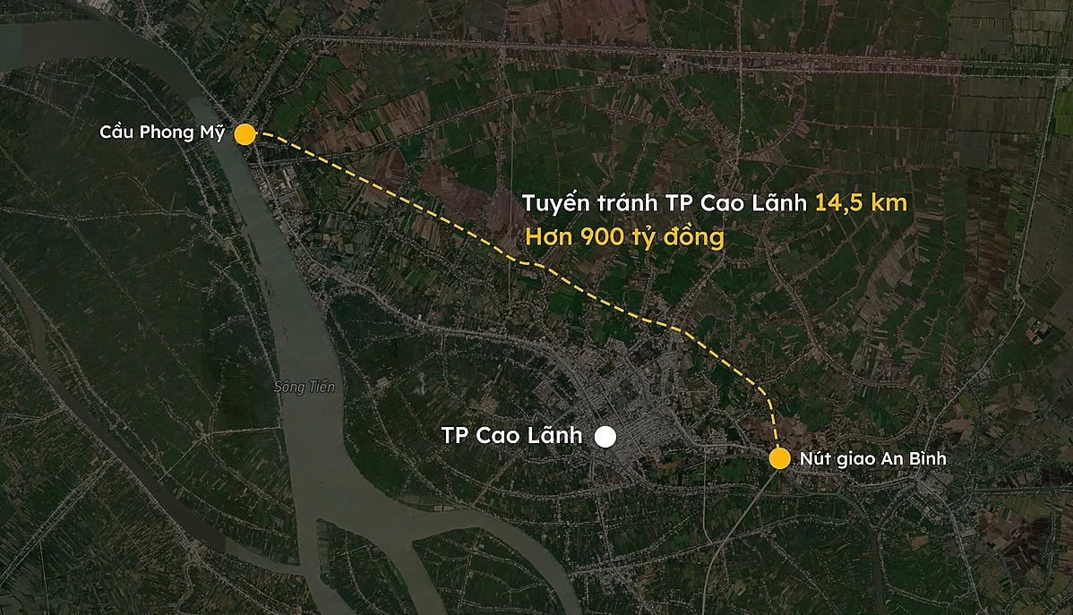 Tuyến tránh Cao Lãnh dài 14 km xuyên các cánh đồng mùa nước, là một phần dự án nâng cấp quốc lộ 30 từ biên giới Hồng Ngự nối cao tốc, sắp hoàn thành cuối tháng 10.