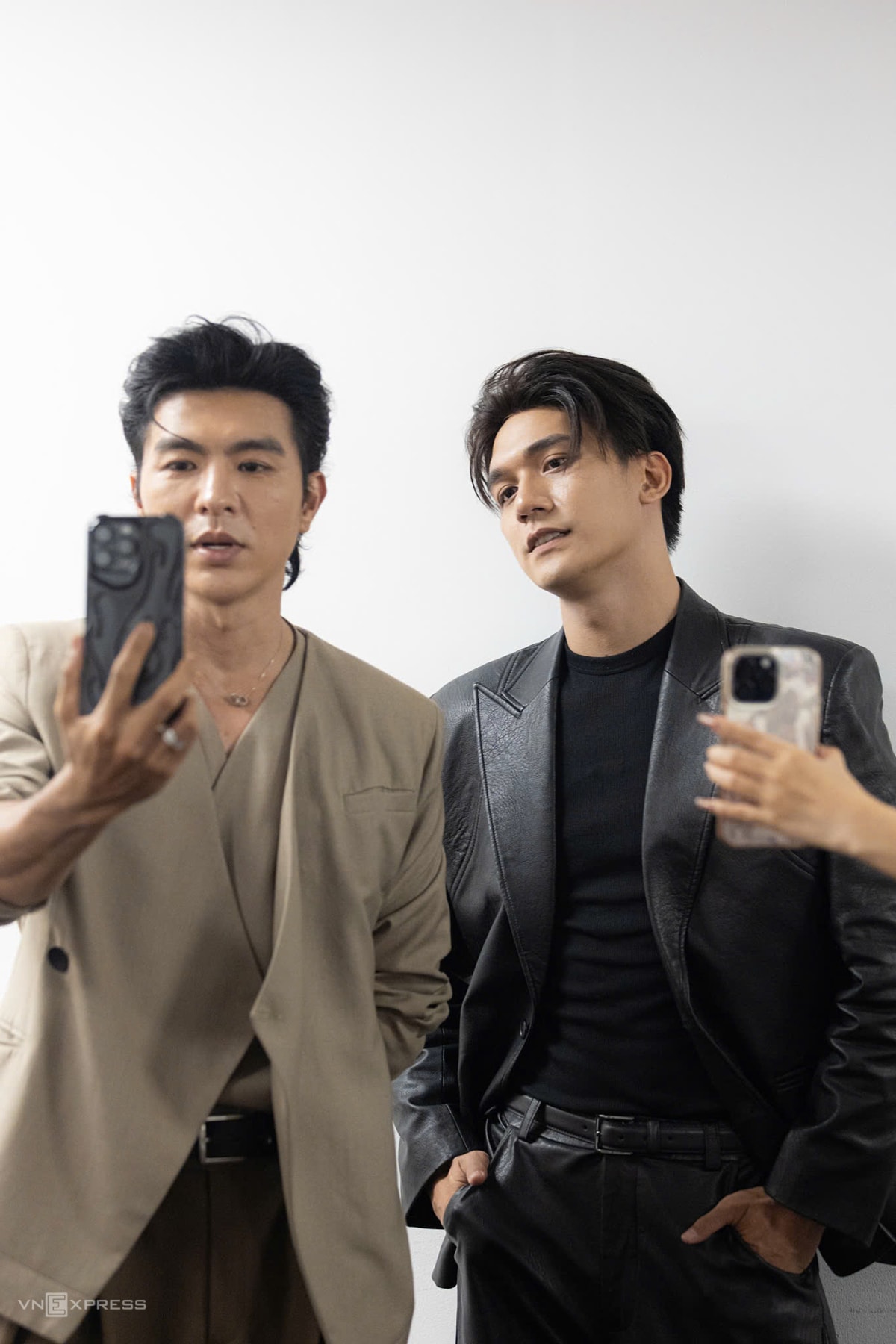 Trong sự kiện, diễn viên Đỗ Nhật Hoàng (phải) nói: "Tôi xúc động khi nhớ lại quá trình làm việc cùng anh em đoàn phim Mưa đỏ. Cảm giác ấy giống như nhân vật Cường bồi hồi nhìn các thành viên Tiểu đội 1 lần cuối. Chặng đường của phim tại rạp khép lại nhưng sẽ mở ra hành trình mới qua truyền hình, nền tảng số và trong ký ức khán giả".