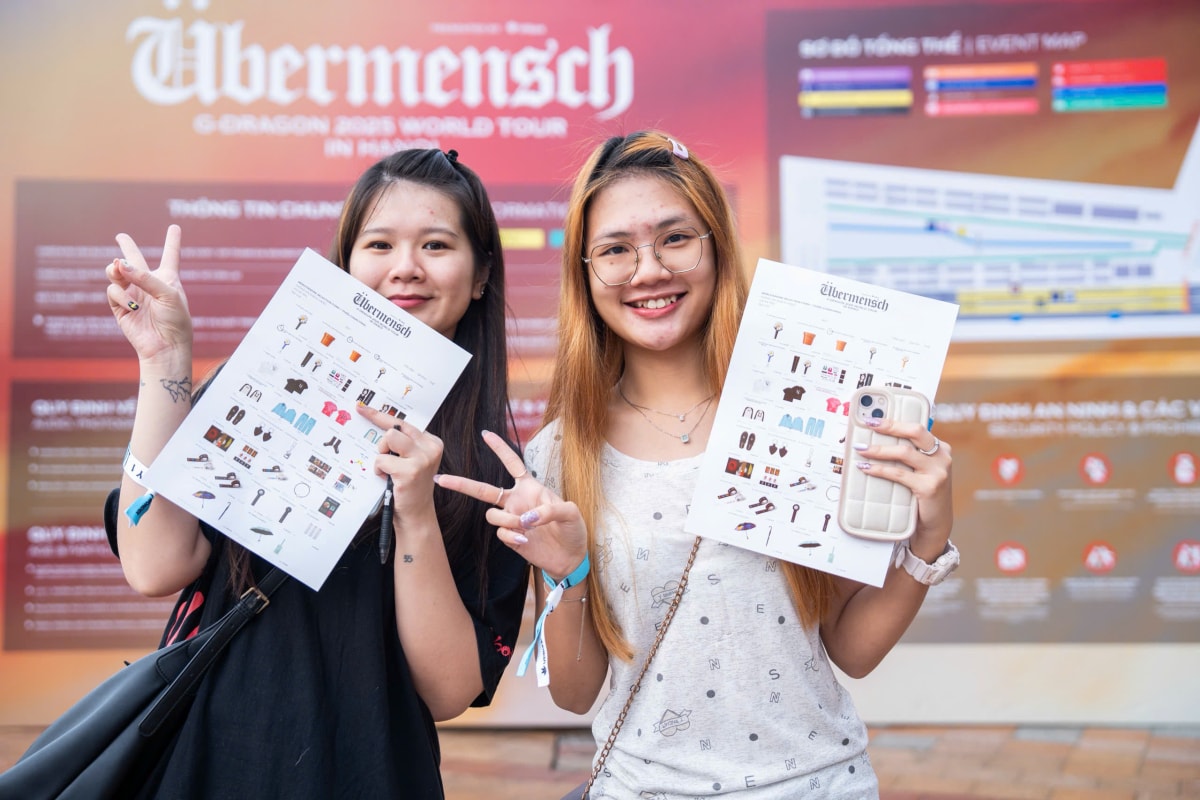 Cass (25 tuổi, Malaysia, bên phải) đến Việt Nam từ ngày 7/11. Sau một ngày nghỉ ngơi, cô cùng bạn YY (26 tuổi) đến khu vực đổi vòng và mua đồ lưu niệm (merchandise) từ sớm. Đây là lần thứ hai Cass đi concert của G-DRAGON.
