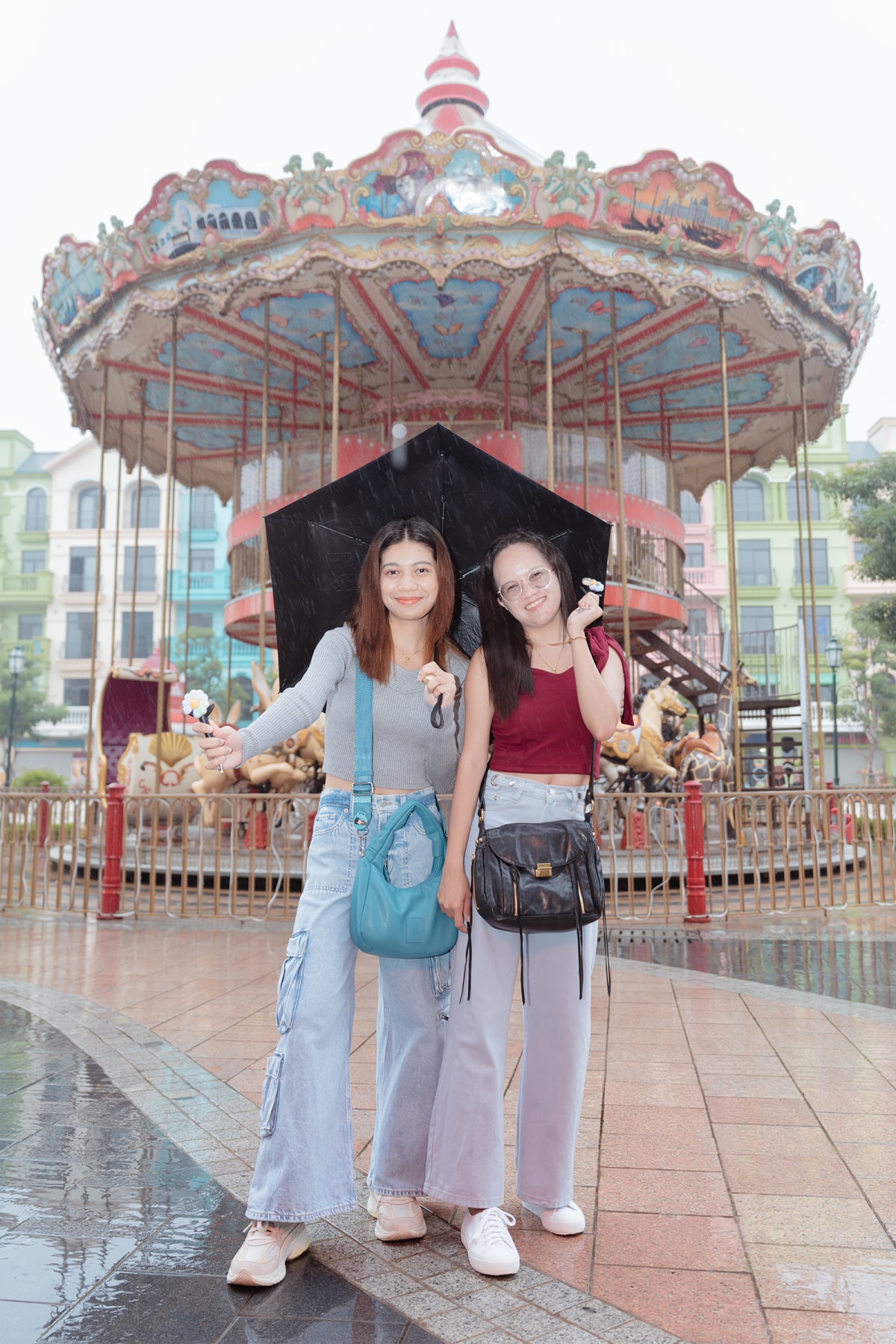 Đôi bạn Malaysia Rohas và Wanie (từ trái sang) cũng ấn tượng với không gian tại Ocean City, tuy hơi mỏi chân khi để đi hết các điểm vui chơi tại đây, tuy nhiên, điều này cũng giúp việc xếp hàng đổi vòng và mua merchandise thoáng đãng, thoải mái hơn. Hai cô bạn 47 tuổi sẽ ở lại sau concert để khám phá thêm về Việt Nam.