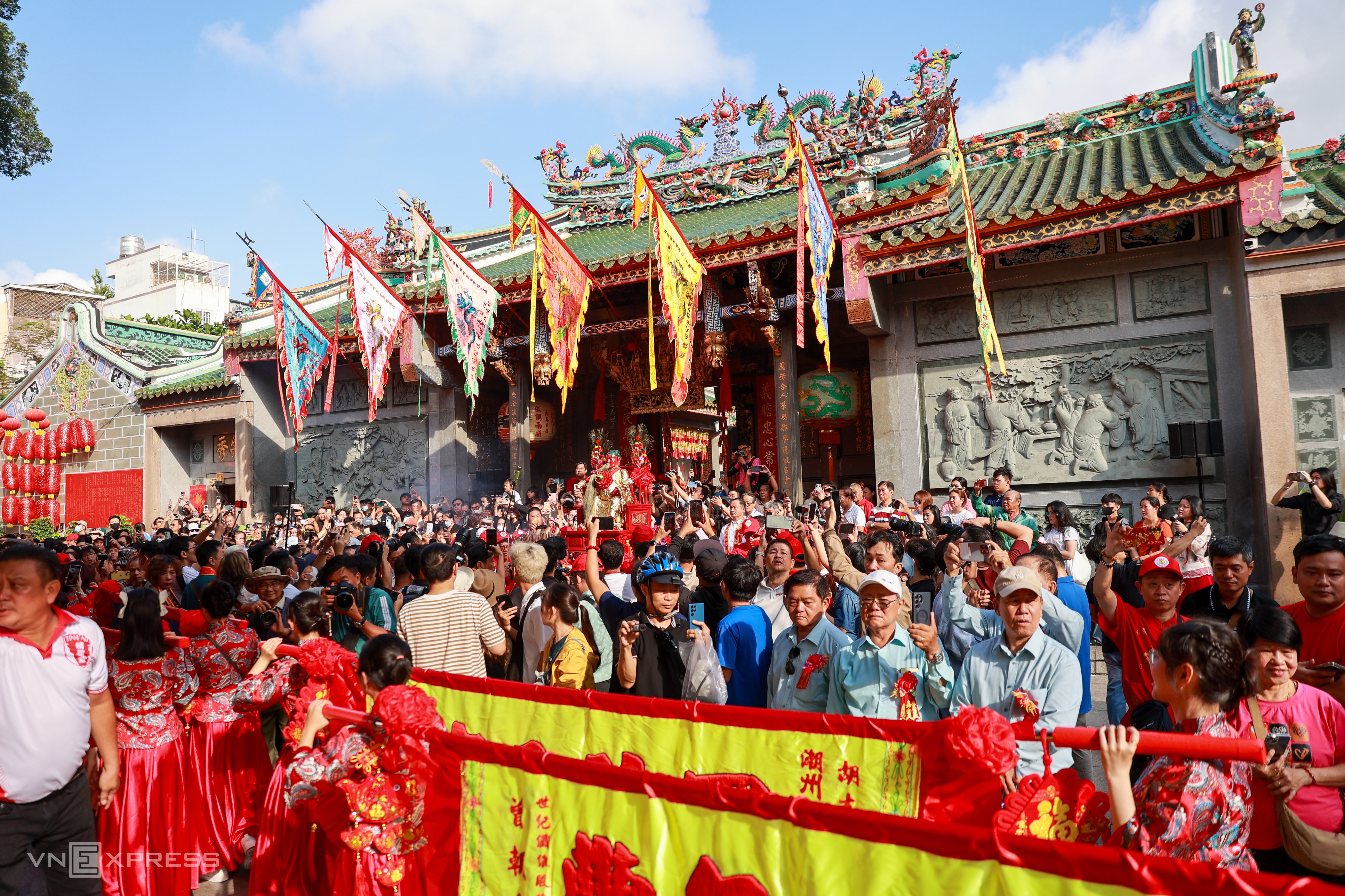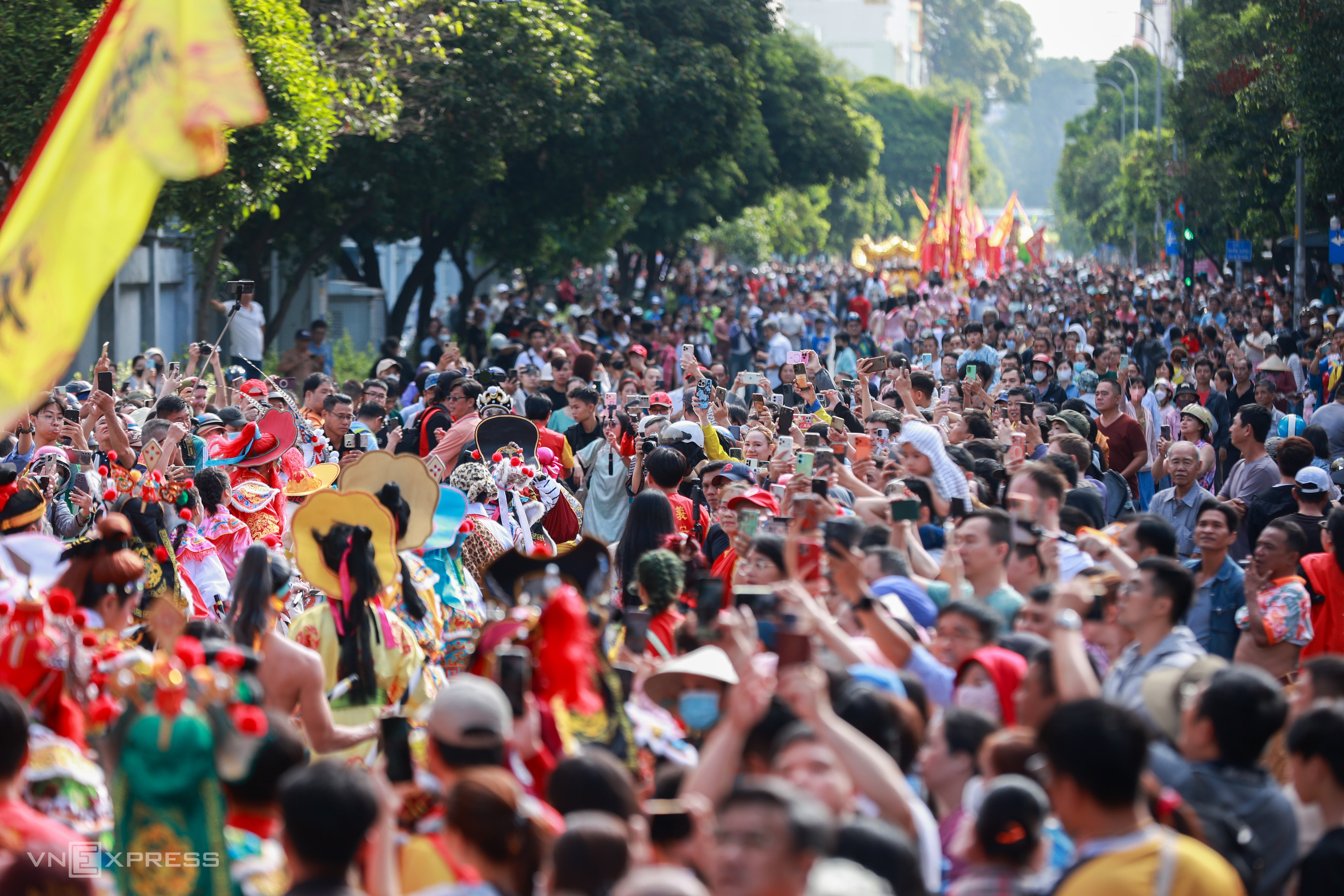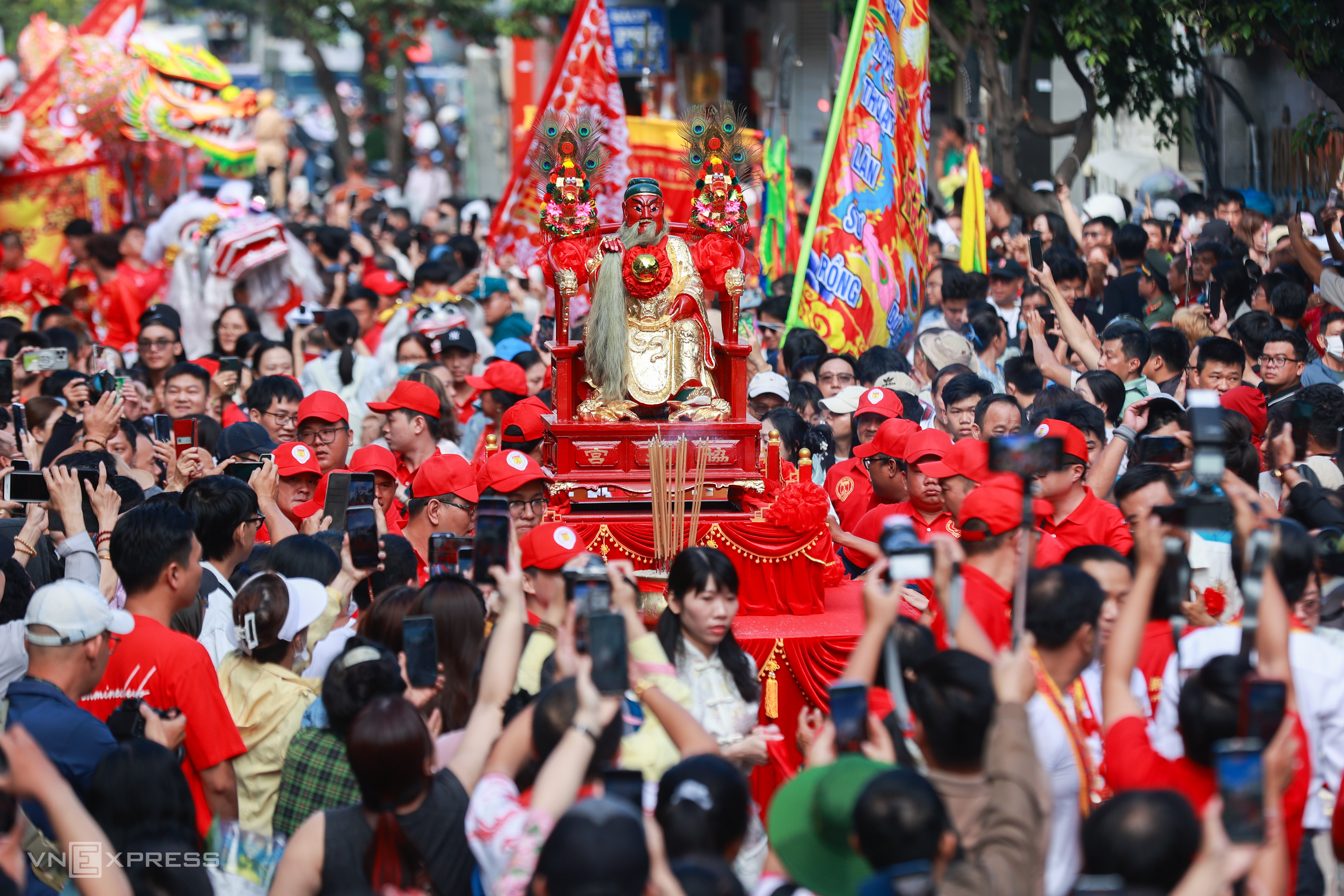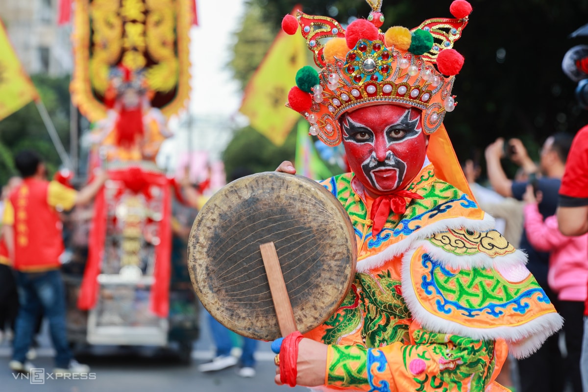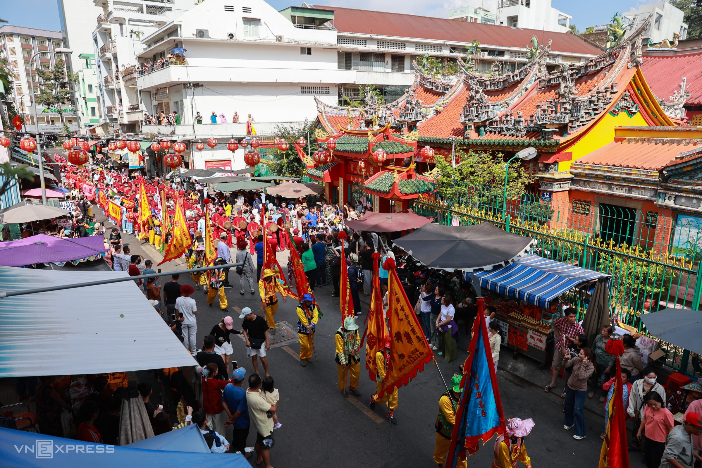 Lúc 9h, đoàn người tham gia Lễ vía Quan Công diễu hành trên đường Lão Tử, sau khi xuất phát từ Hội quán Nghĩa An trước đó một giờ. Hoạt động Nguyên Tiêu nghinh Ông Quan Thánh Đế Quân là tín ngưỡng văn hóa truyền thống của cộng đồng người Hoa tại Chợ Lớn.
