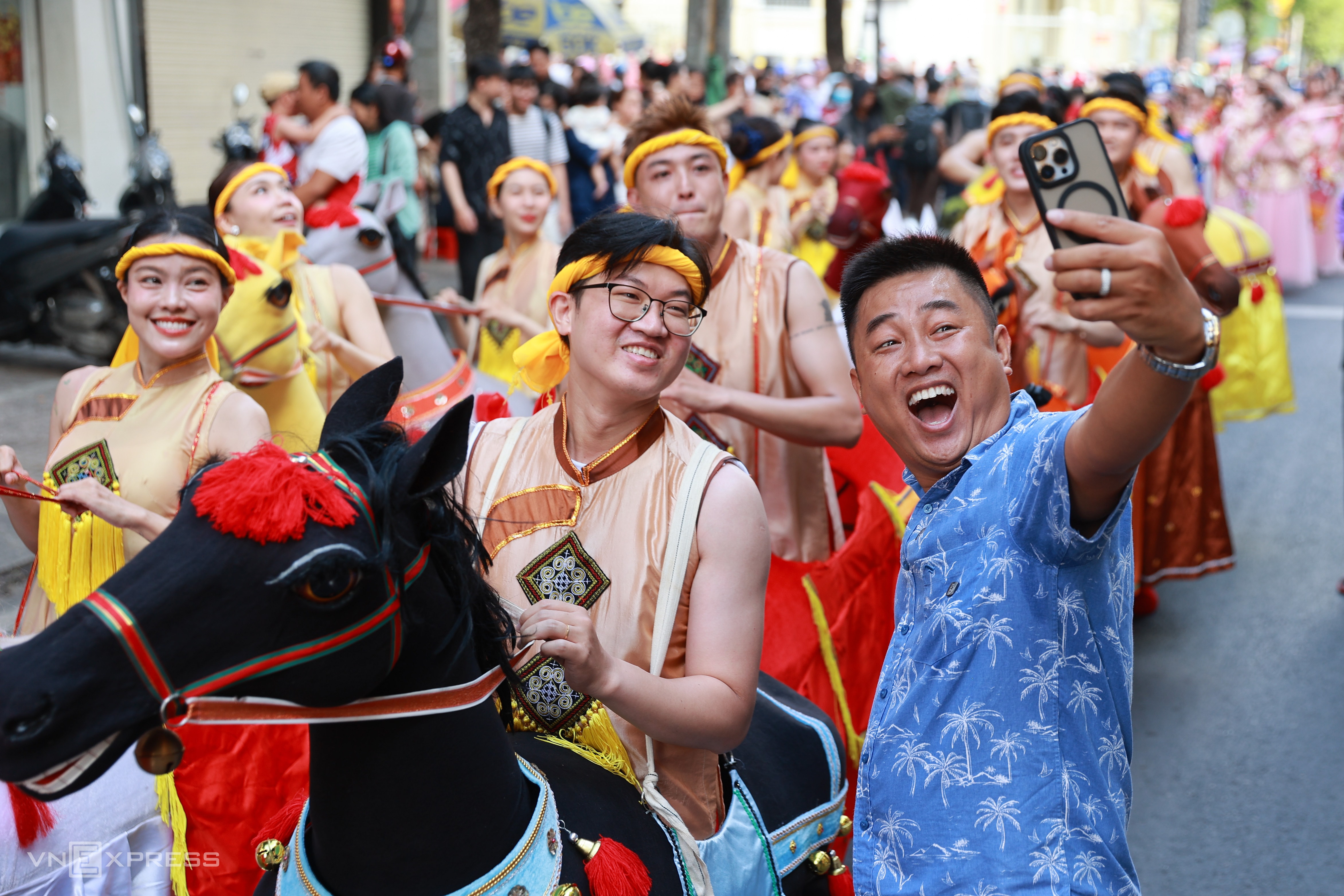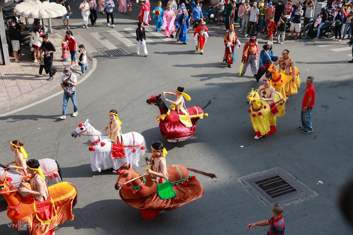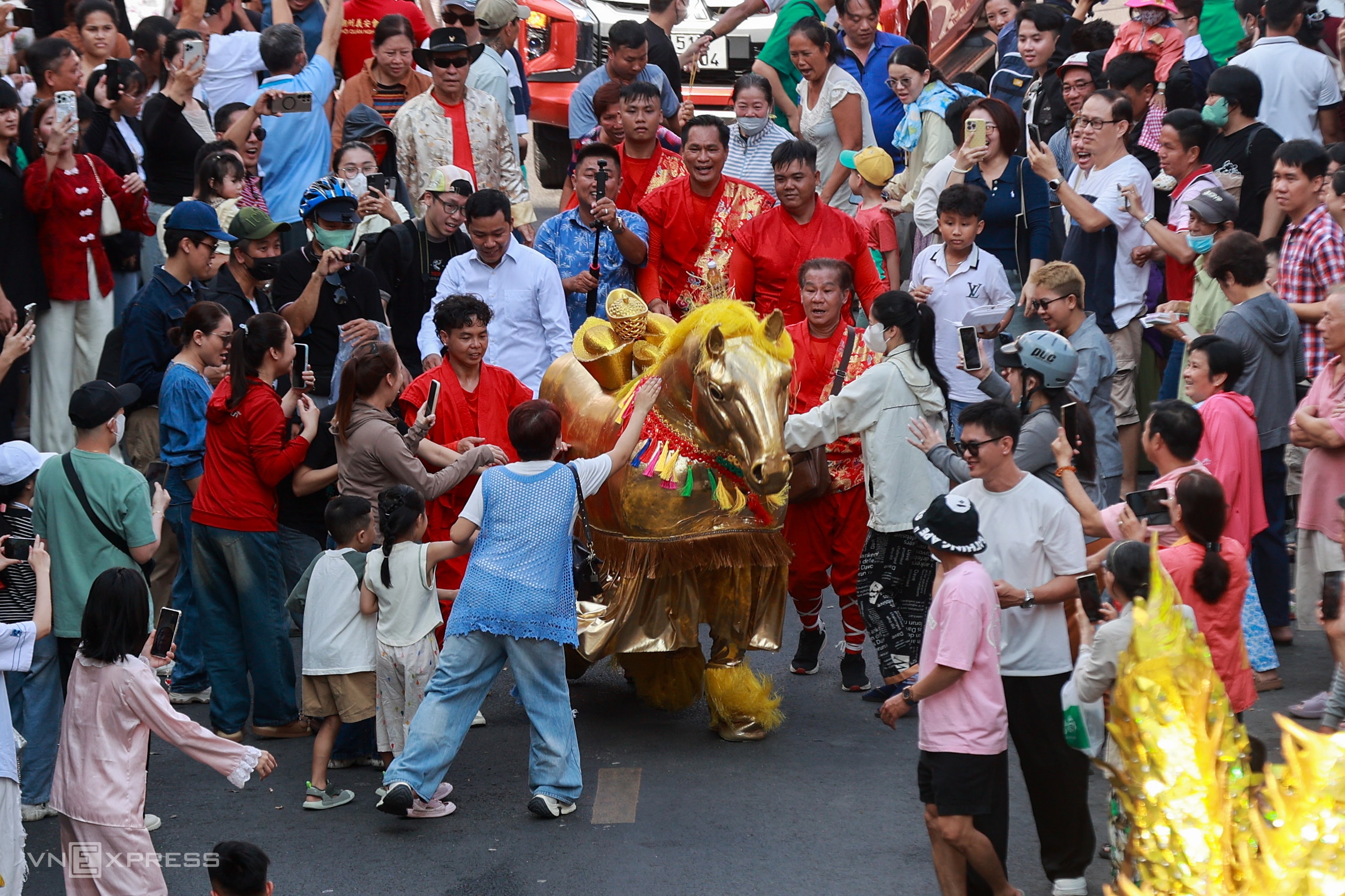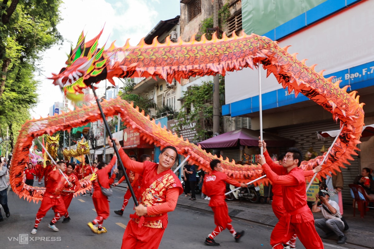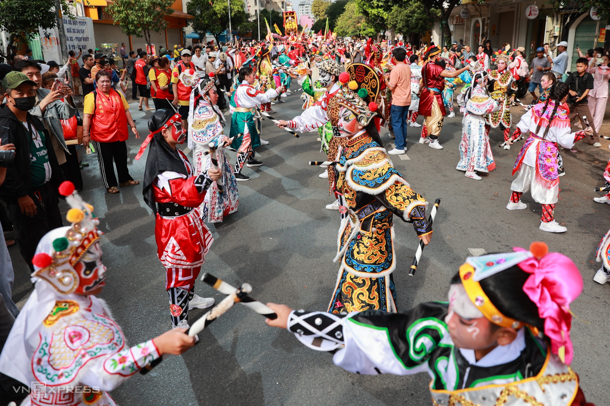 Năm nay, khoảng 800 người thuộc hơn 20 đoàn tham gia diễu hành, chủ yếu là cộng đồng người Hoa tại TP HCM.