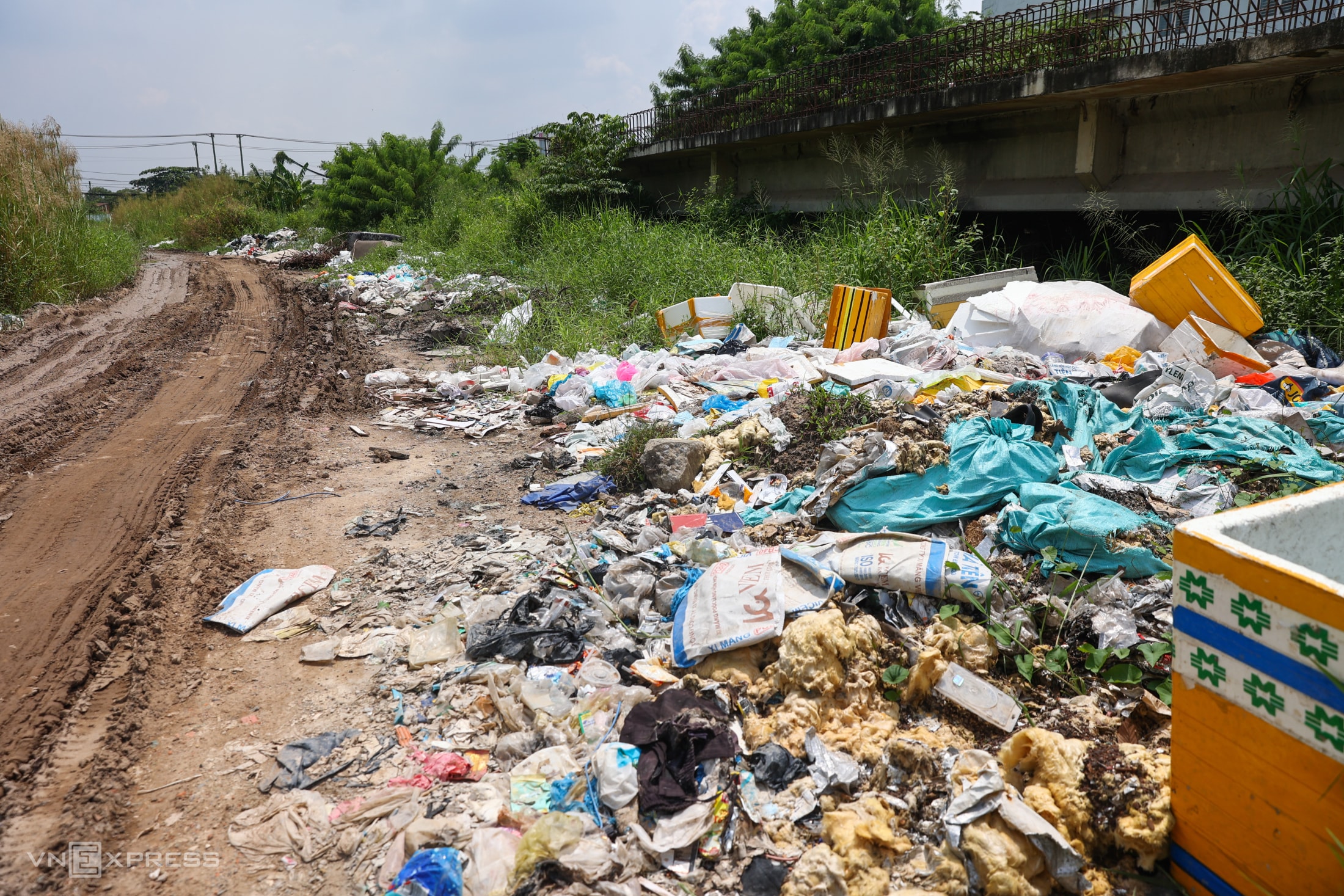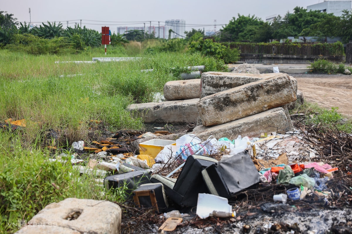 Công trường đường Vành đai 2 ngổn ngang vật liệu xây dựng, rác thải, cỏ mọc um tùm sau 5 năm tạm ngưng, sẽ tái khởi công cuối tháng 10.