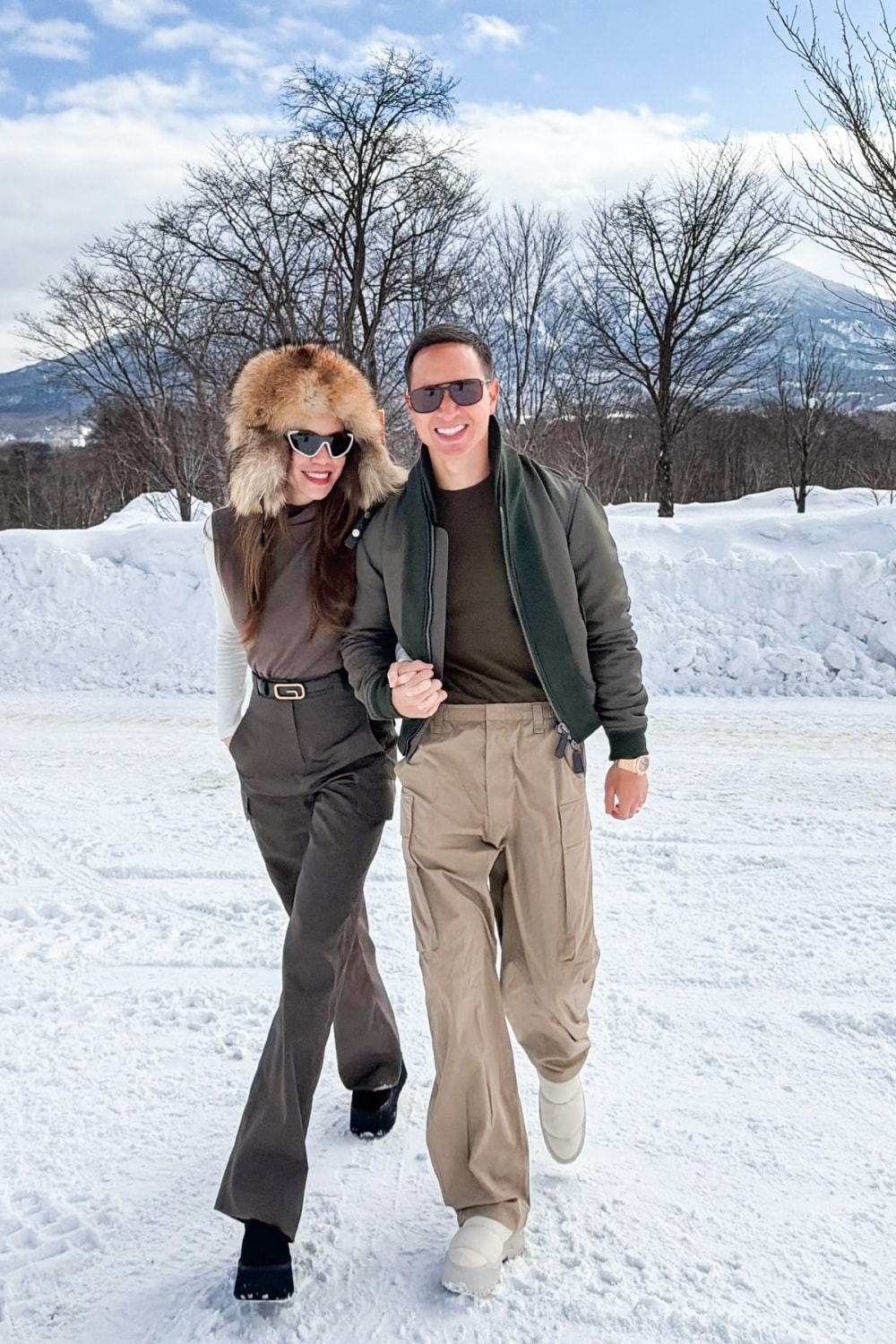 Cặp sao nhí vui chơi tại Niseko - khu nghỉ dưỡng trượt tuyết nổi tiếng ở Hokkaido, hôm 21/2. Hồ Ngọc Hà cho biết dù lần đầu học bộ môn này, hai con điều khiển thành thục hơn bố mẹ, tự tin lướt đi trên tuyết.