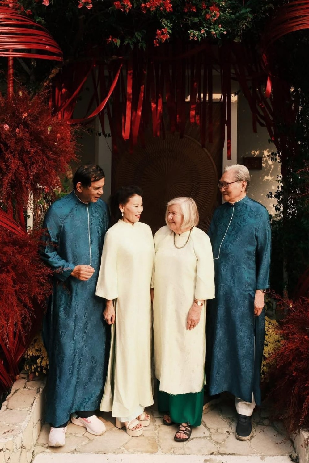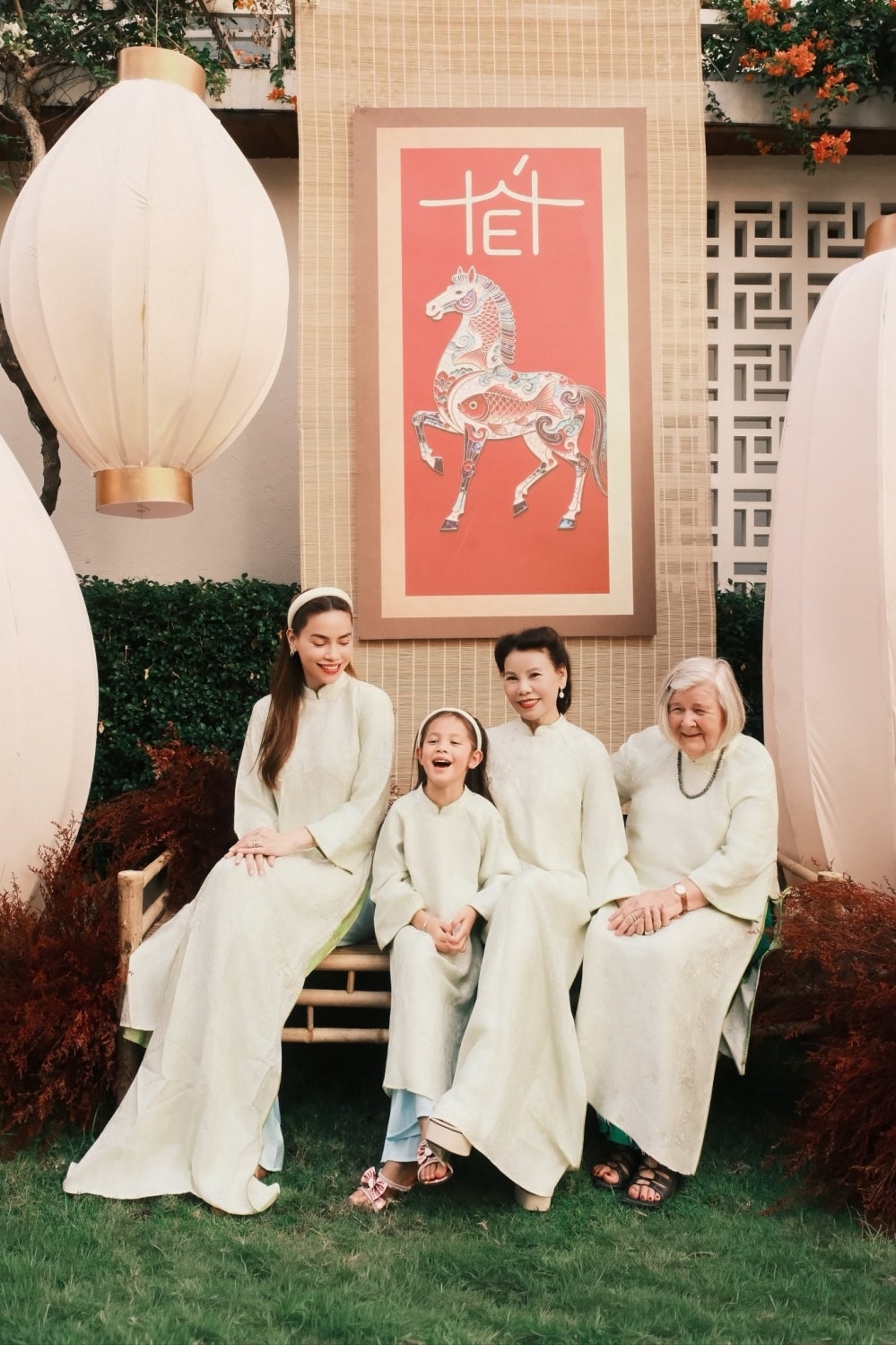 Bố mẹ Hồ Ngọc Hà và thông gia diện áo dài đồng điệu. Ca sĩ cho biết do người thân ngày càng lớn tuổi, cô muốn tạo kỷ niệm đẹp cho gia đình qua những bộ ảnh, chuyến đi.