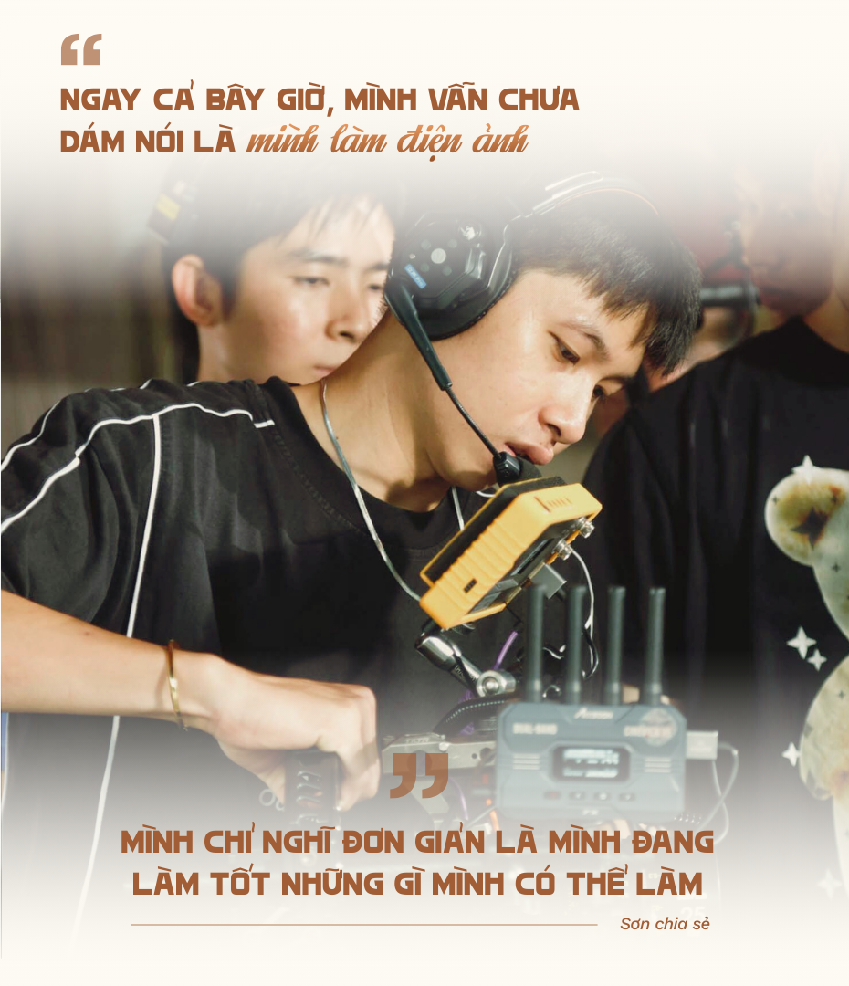 Ngay từ khi còn là học sinh THPT, Sơn đã bắt đầu kiếm tiền từ công việc sản xuất hình ảnh. Lớp 10, lớp 11, cậu đã quen với việc cầm máy, dựng clip, làm nội dung thuê. Vì thế, thời điểm đứng trước ngưỡng cửa đại học, Sơn thậm chí không có ý định đi học. Điện ảnh lúc ấy, với Sơn, đơn giản là một nghề đã có thể nuôi sống bản thân.