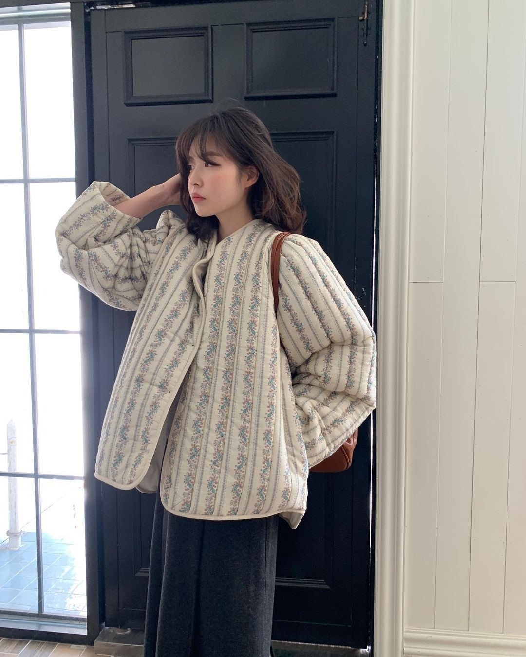 Kiểu áo chần bông thường được các cụ bà mặc thời xưa đang được các bạn trẻ yêu thích vì trông gần gũi, dễ mặc.