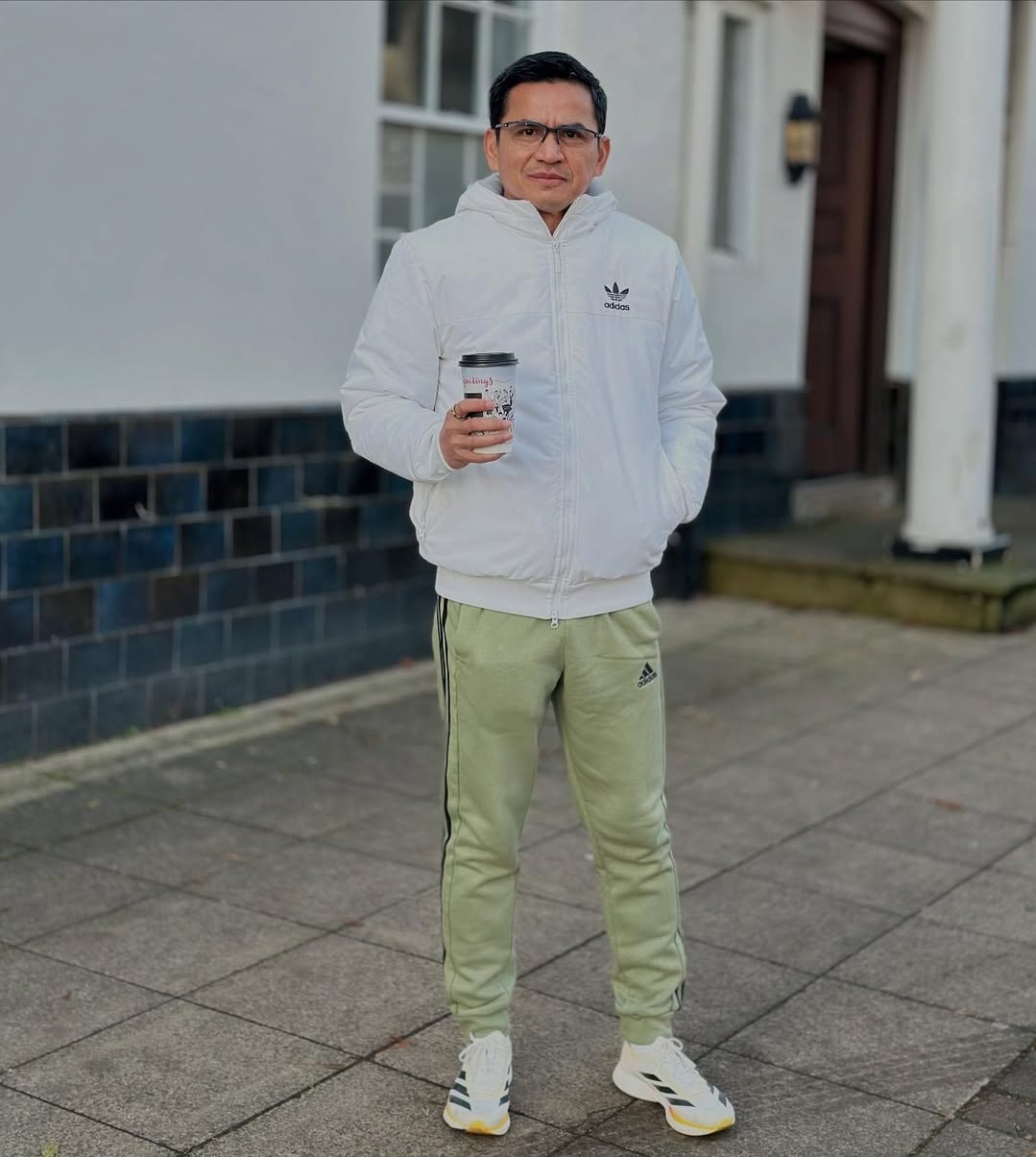 Ông phối cả set đồ phong cách thể thao khi dạo chơi, uống cà phê cùng bạn bè.