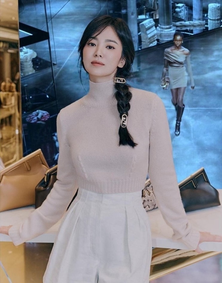 Song Hye Kyo lần đầu được mời tham dự Met Gala 2023 - sự kiện thời trang lớn nhất thế giới. Cô thể hiện sự táo bạo trong bộ đầm lấy cảm hứng từ đồ ngủ của Fendi. Cô cũng thay đổi kiểu tóc, từ tóc bob đến lob, tết bím, tạo sự mới mẻ.