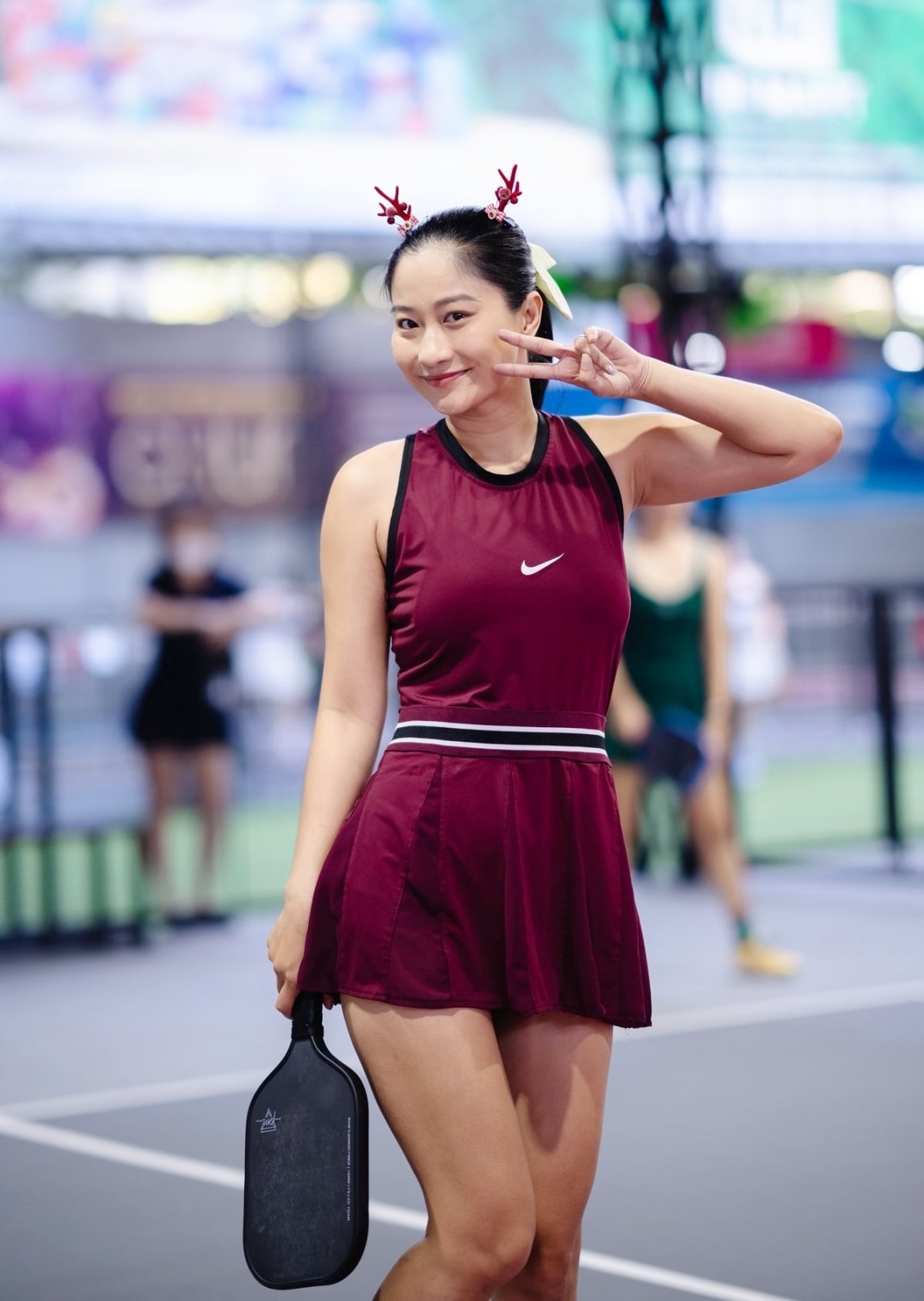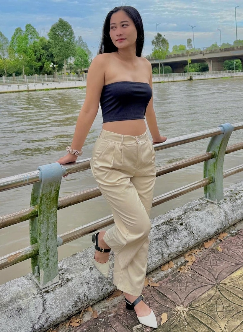 Chân Chân - bạn đời kém nghệ sĩ Việt Anh 38 tuổi - tạo sức hút với áo ôm, quây ngực, giúp tôn vóc dáng.