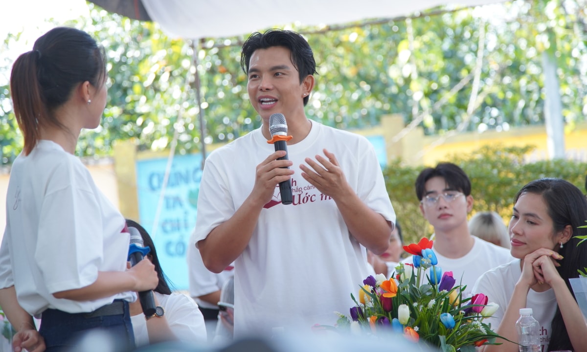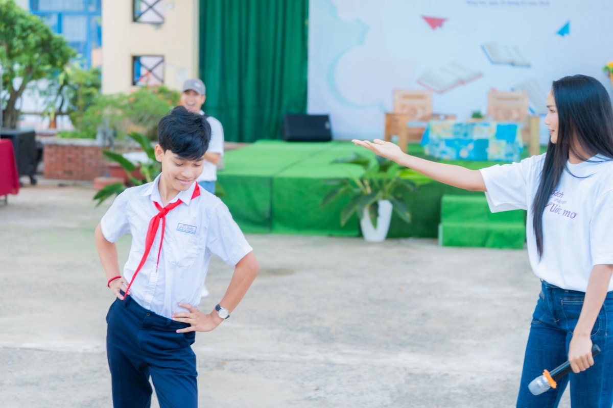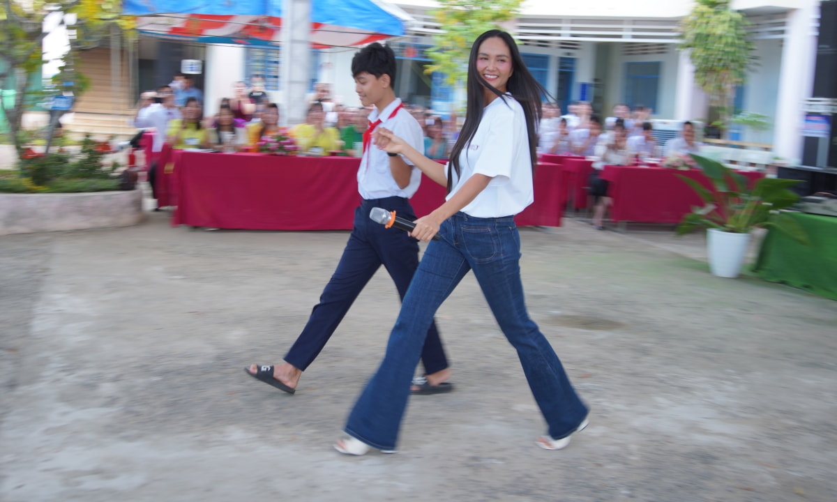 H'Hen Niê catwalk cùng một nam sinh của trường THCS - THPT Tây Sơn (Đồng Nai). Video: Cát Tiên