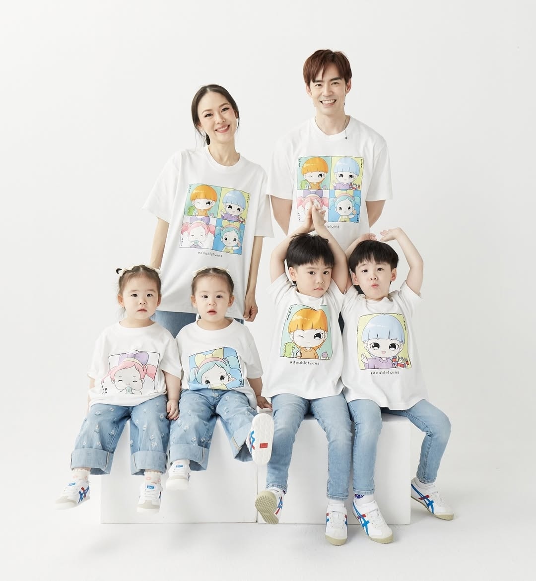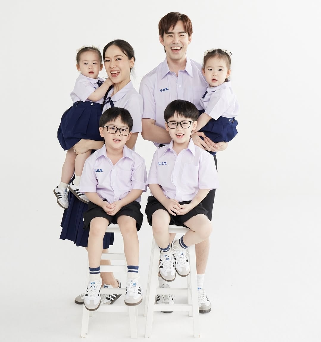 Hai bé trai gọi thân mật là Thee (tên thật Theethongtham Tanjararak) và Phee (Pheethongtham Tanjararak). Vợ chồng sao cho biết các bé sáng dạ, biểu cảm đa dạng trong những lần đóng quảng cáo cùng bố mẹ.