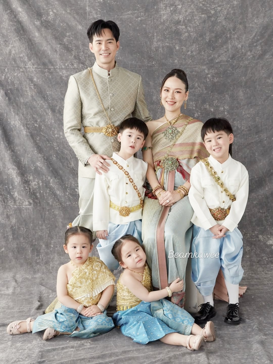 Hôm 1/3, tài tử Beam Kawee cùng bà xã Oil Atiporn đồng loạt đăng bộ ảnh cả nhà mừng năm 2026 theo hai phong cách truyền thống và hiện đại, hút hơn nửa triệu lượt thích.